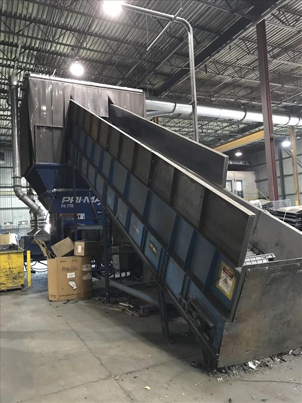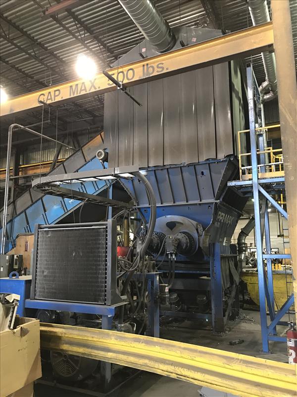 Primax Shredder, model PR770 with 108 in x 81 in Feed Opening, Hydraulically Driven, RSN: 35439, 10-40 TPH Production Rate Per Factory Literature, 250HP 3/60/575 Volt Electric Motor, (2) Brevini Planetary Gear Reducers, (2) Parker Hydraulic Motors & Pumps, 51,500 ft-lb Torque Per Shaft, 45,800 lbs Cutter Force @ Tip, (Quebec Location) [Lots have been disassembled for ease of removal and may not be exactly as pictured]\n