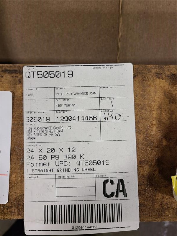 (1) TYROLIT Grinding Wheel, Straight 24x20x12