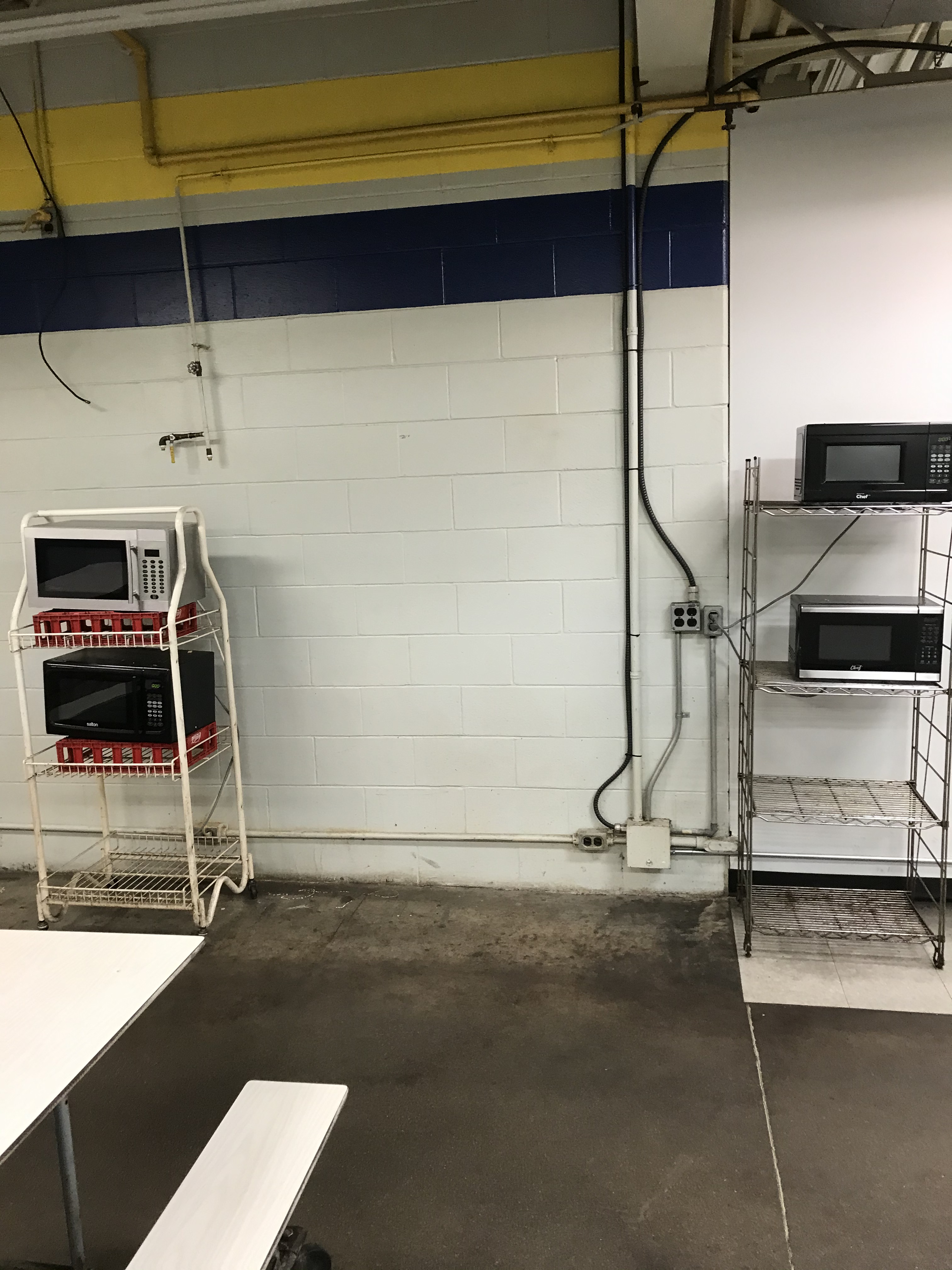 CONTENTS OF LUNCH ROOM (8) TABLES, (4) MICROWAVES, (1) FREEZER