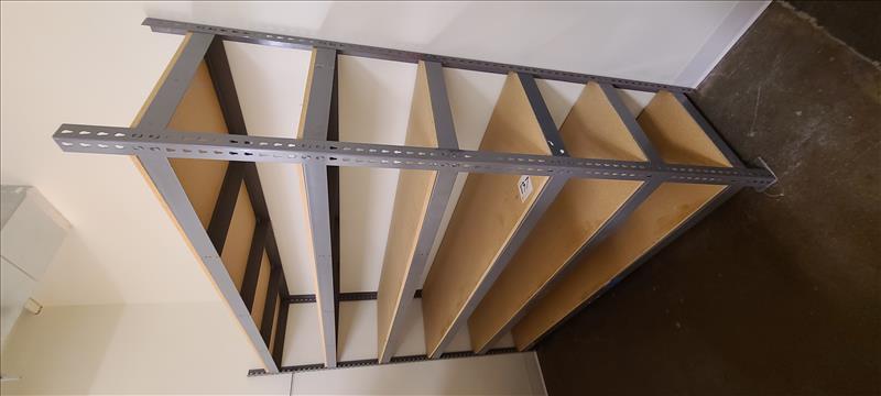 (2) Sections of Dexion Shelving w/ MDF Wood Boards, 96 in. x 24 in. x 84 in.