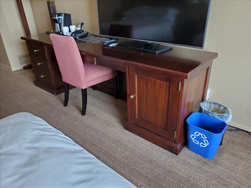 Double Bedroom featuring: two beds and frames, metal headboards, night stand, desk, desk chair, side chair, lamps, mirror, pictures, and window coverings (NOT INCLUDED: ALL BEDSHEETS, PILLOWS, LINENS, TOWELS, TELEVISION, PHONE SYSTEMS, COFFEE MAKERS, ALARM CLOCKS, GARBAGE BINS, & HEALTH & BEAUTY PRODUCTS ).