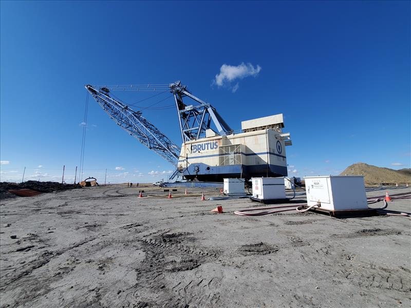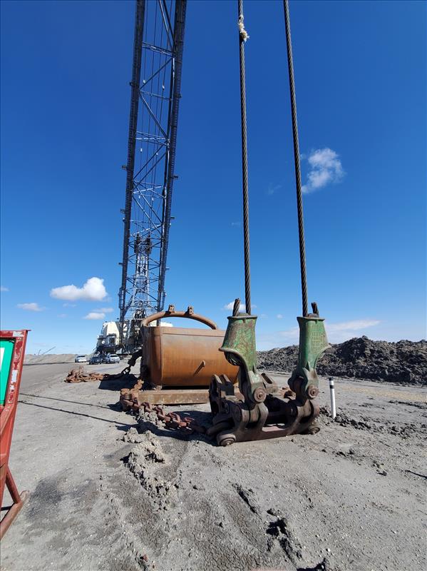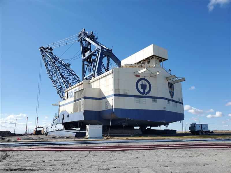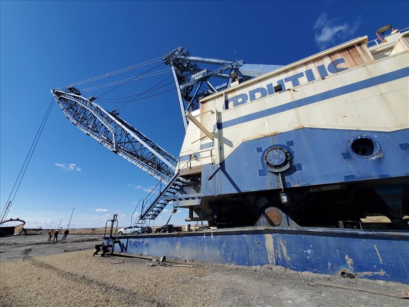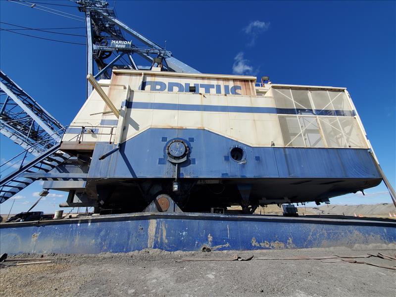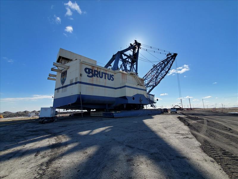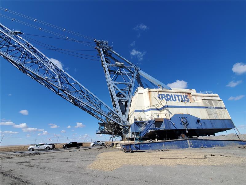 Marion Walking Dragline, model 8200, name Brutus (1980), electrical/walking, 180,000 operating hours, 325 ft boom height, ESCO bucket 75 cubic yards, weight 6,850,000 lbs, total weight 8,350,000 lbs (with ballast).