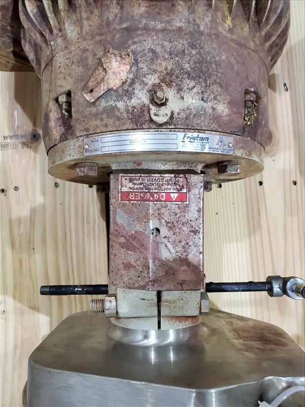 Fristam stainless centrifugal pump, mod FPR 742-170, s/n 1503059, 2 in x 2 in , with 5 hp motor [Packaging Warehouse]