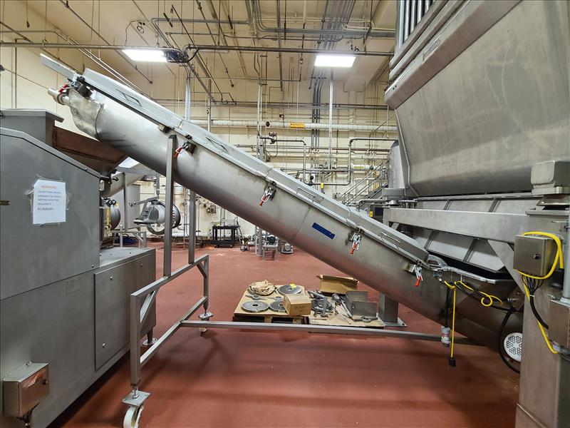 Stainless incline screw auger, 15 ft 4 in l x 16 in auger, with 5 hp motor, mobile [Meat Grinding Area]
