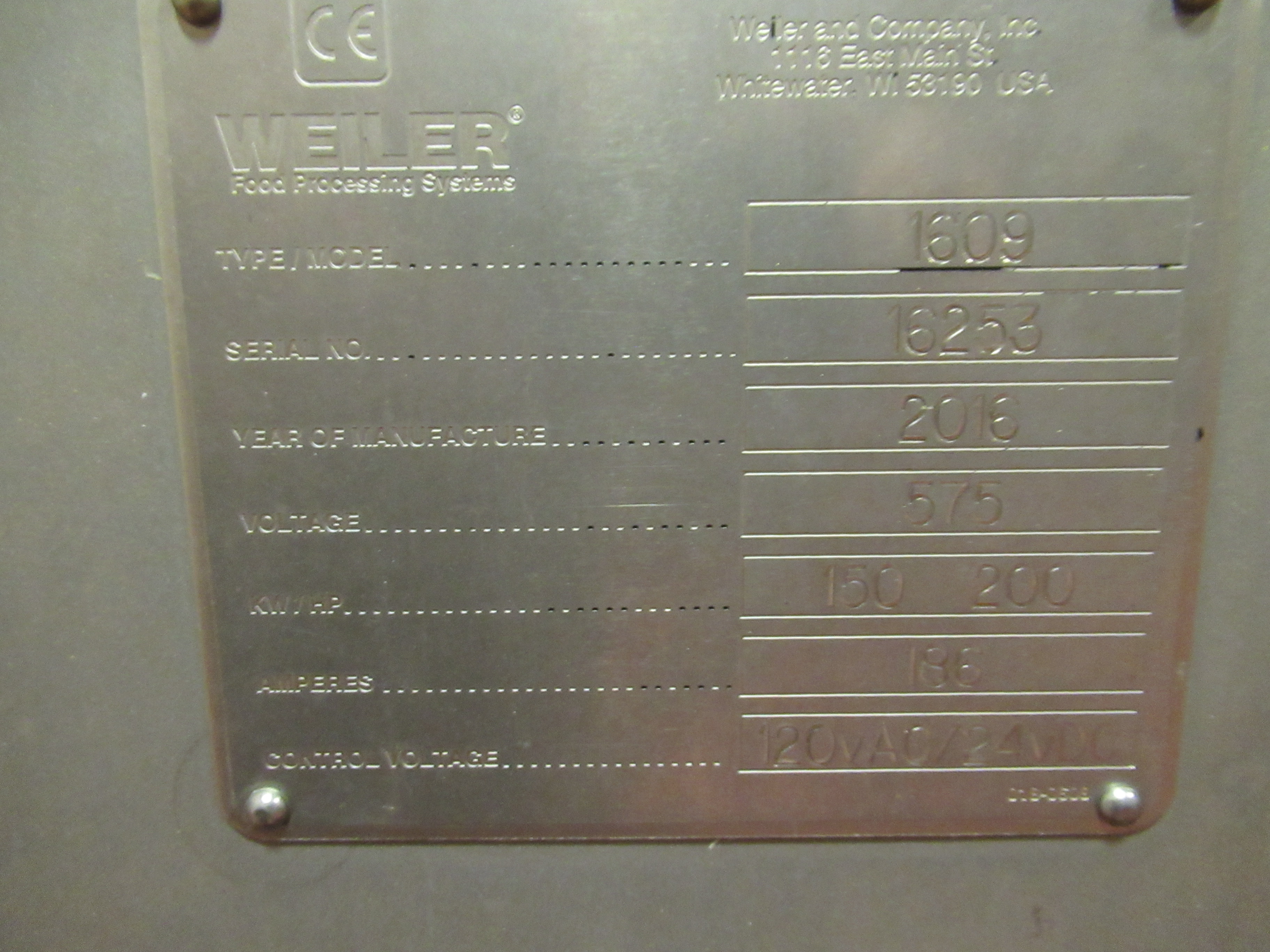 Weiler stainless meat grinder, mod 1609, s/n 16253, 150 hp, 575 v, (2) pallet with blades and die plate, (2016) [Meat Grinding Area]