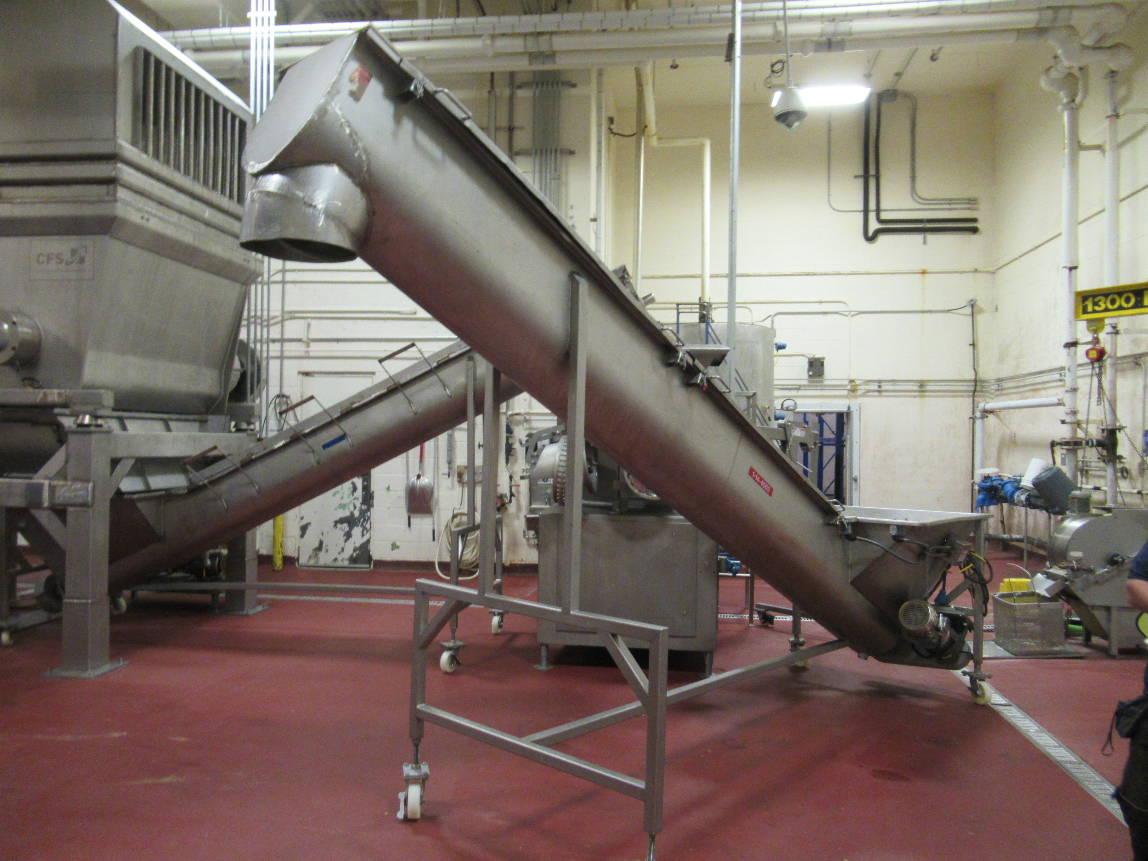 Stainless incline screw auger, 180 in l x 16 in diameter auger, with 5 hp motor [Meat Grinding Area]