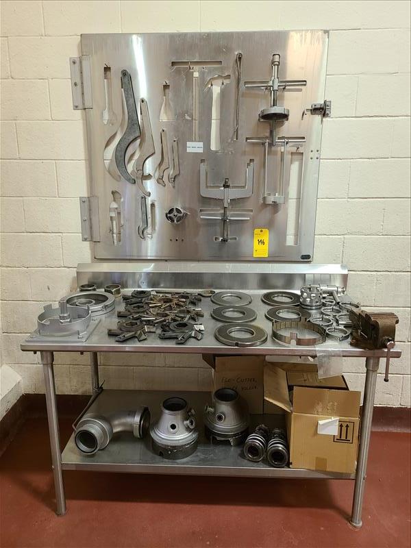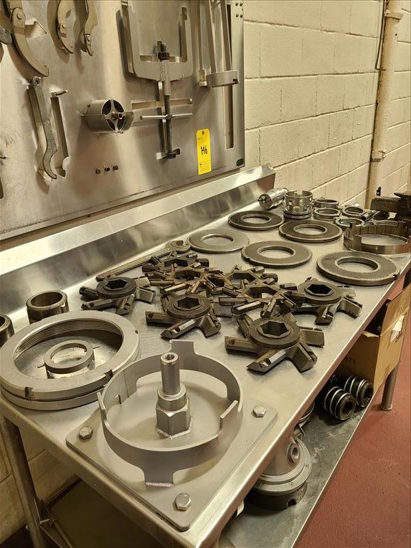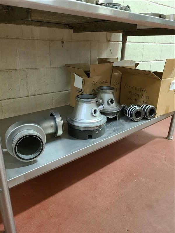 CFS stainless emulsifier, mod ECOCUT 225, s/n 67522, 150 kw hp, 575 v, with stainless table, with cutting knife, die, plate wall mount with tooling, (2010) [Meat Grinding Area]