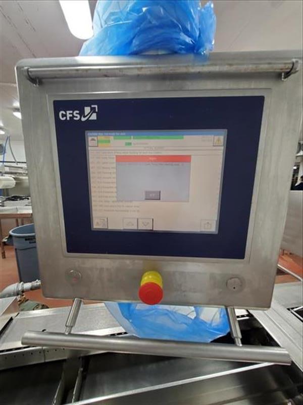 [LOT] CFS Slicing and Packaging Line, incl (1) CFS Megaslicer, S/N. 4044602712, (1) CFS Checkweigher, Model Check 3000, (1) CFS Slicing Loader, Model Shingle Loader, S/N. 4040860366, (1) CFS Thermoformer Form Fill and Seal Packaging Machine, Model PowerPak NT, S/N. 44300101 (SUBJECT TO CONFIRMATION)