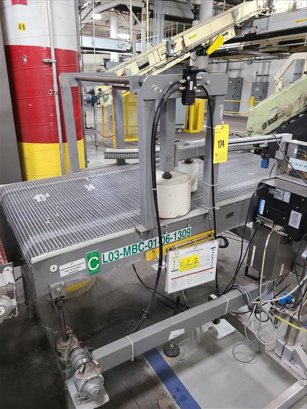 NATO labeler, model 8460 SE, s/n 60801, with incline conveyor, 67 in l x 34 in w [Packaging Line 3]