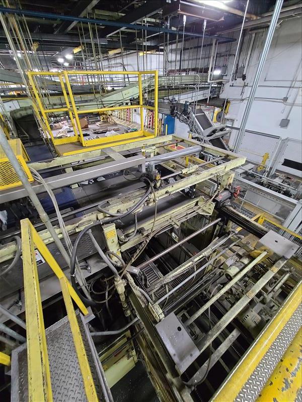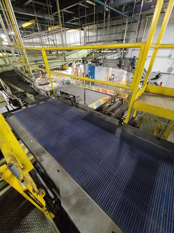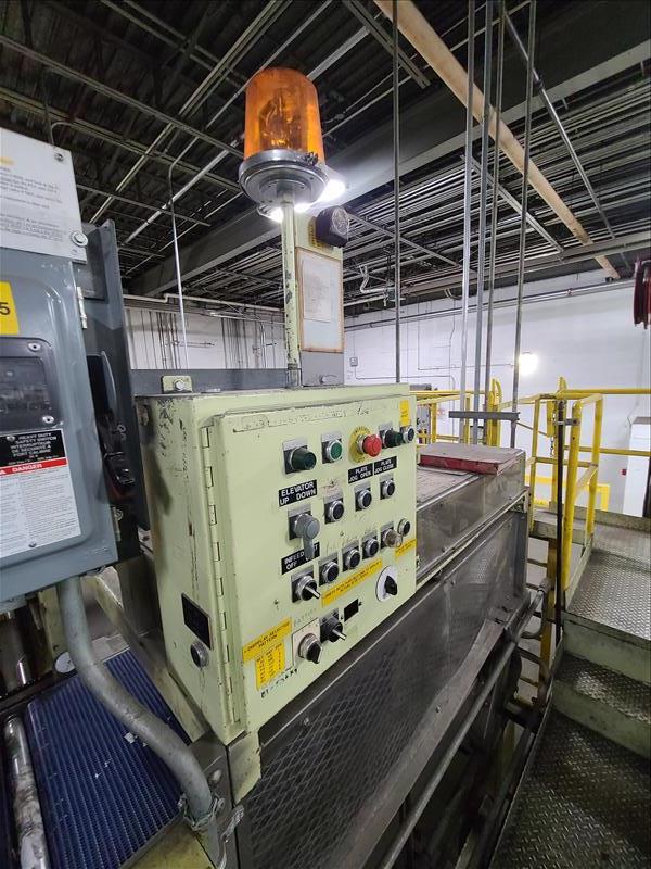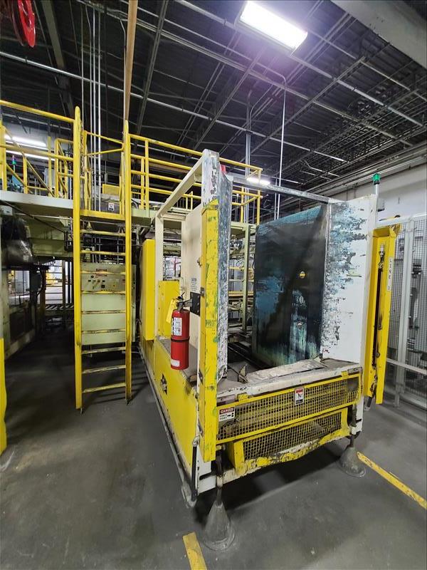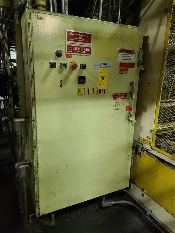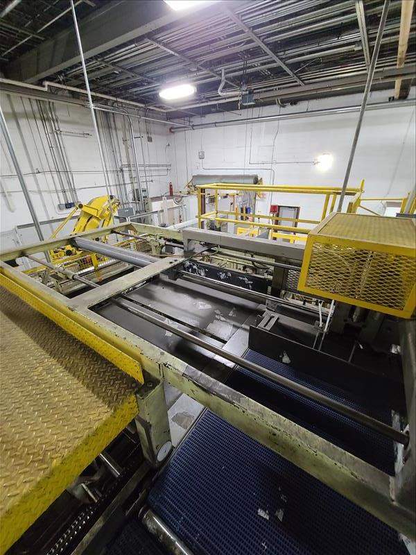 Von Gal palletizer, mod GPLX 4840 RH, s/n 2071, with infeed chain conveyor slip sheet inserter, 16 ft l x 36 in discharge conveyor [Palletizing Line 3]