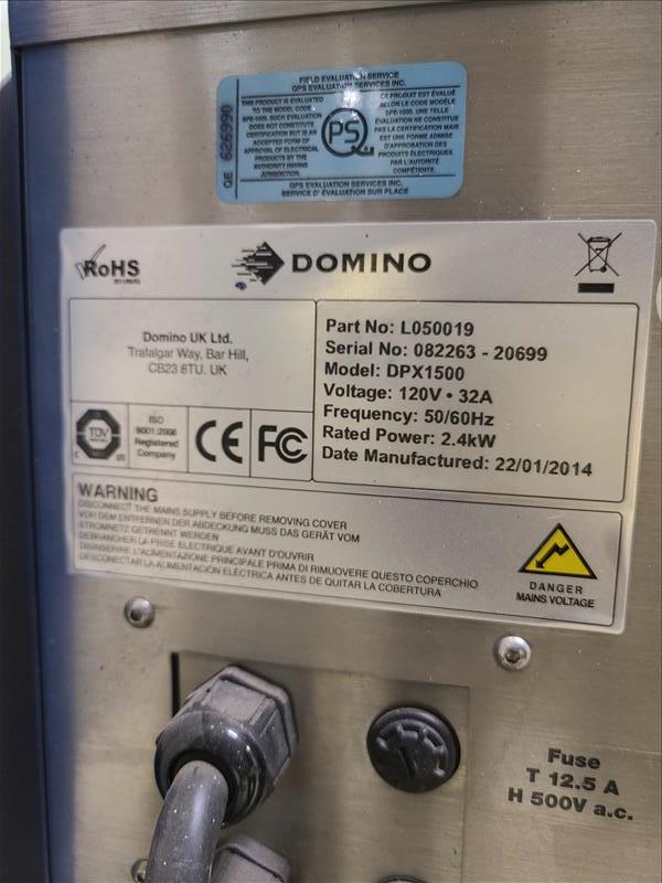 Domino inkjet printer, mod DPX 1500, s/n 20699, digital color touchscreen [Packaging Line 8)