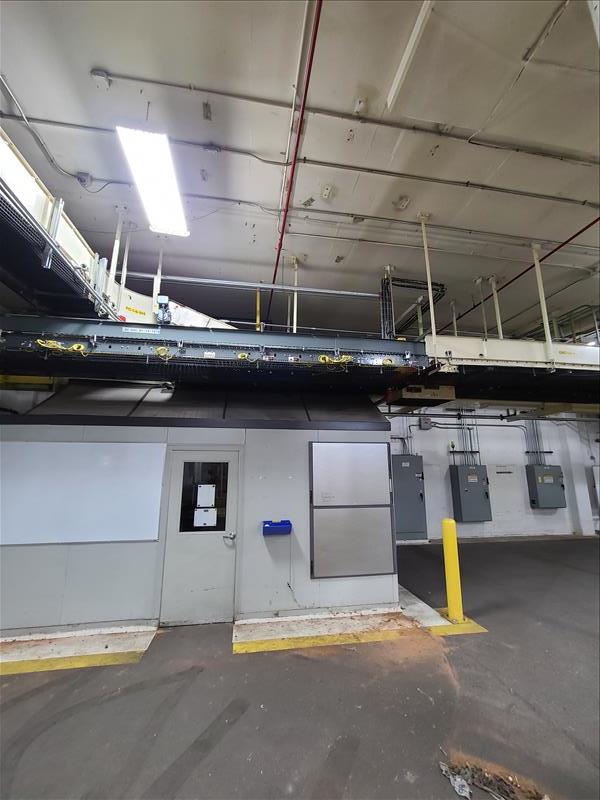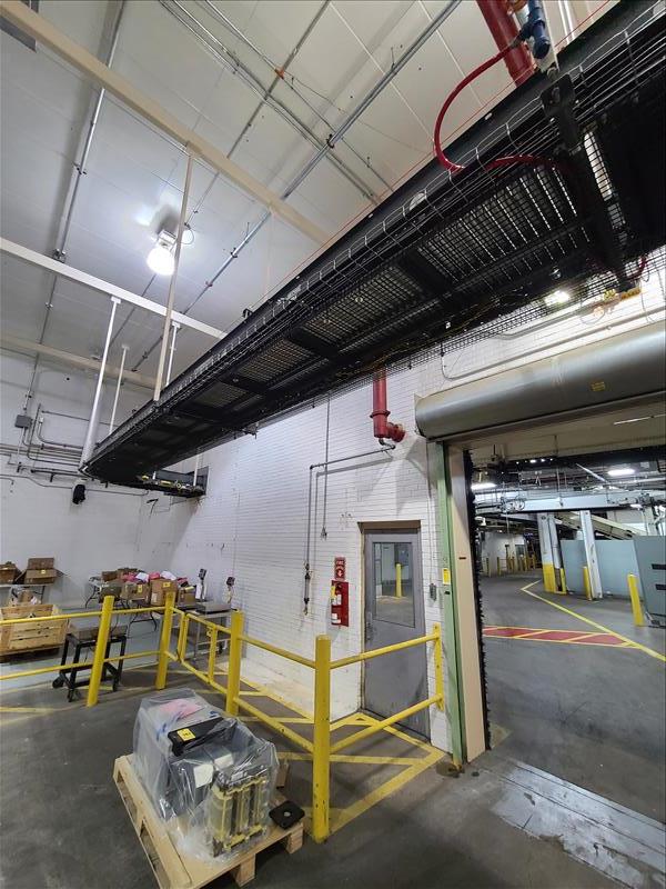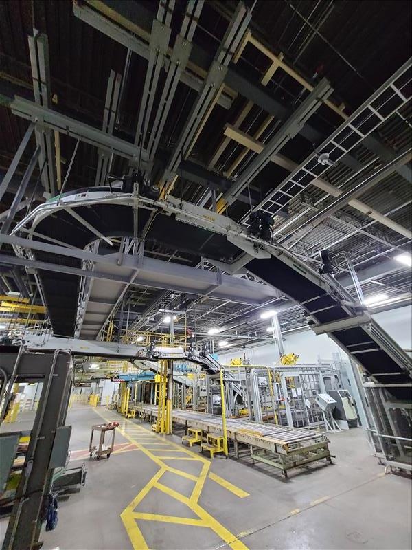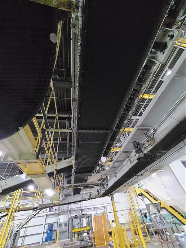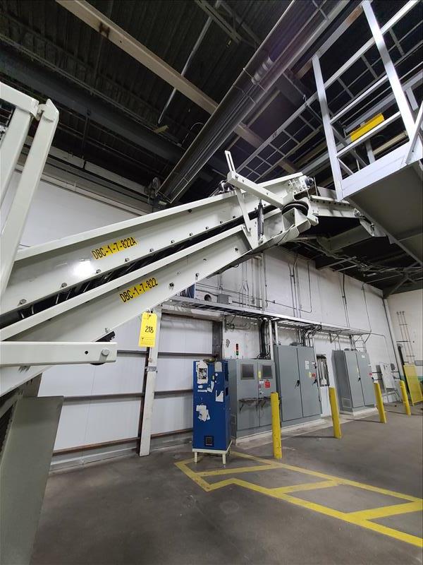 Power roller belt conveyor to robot palletizer, 310 ft l x 24 in w [Packaging Line 8]