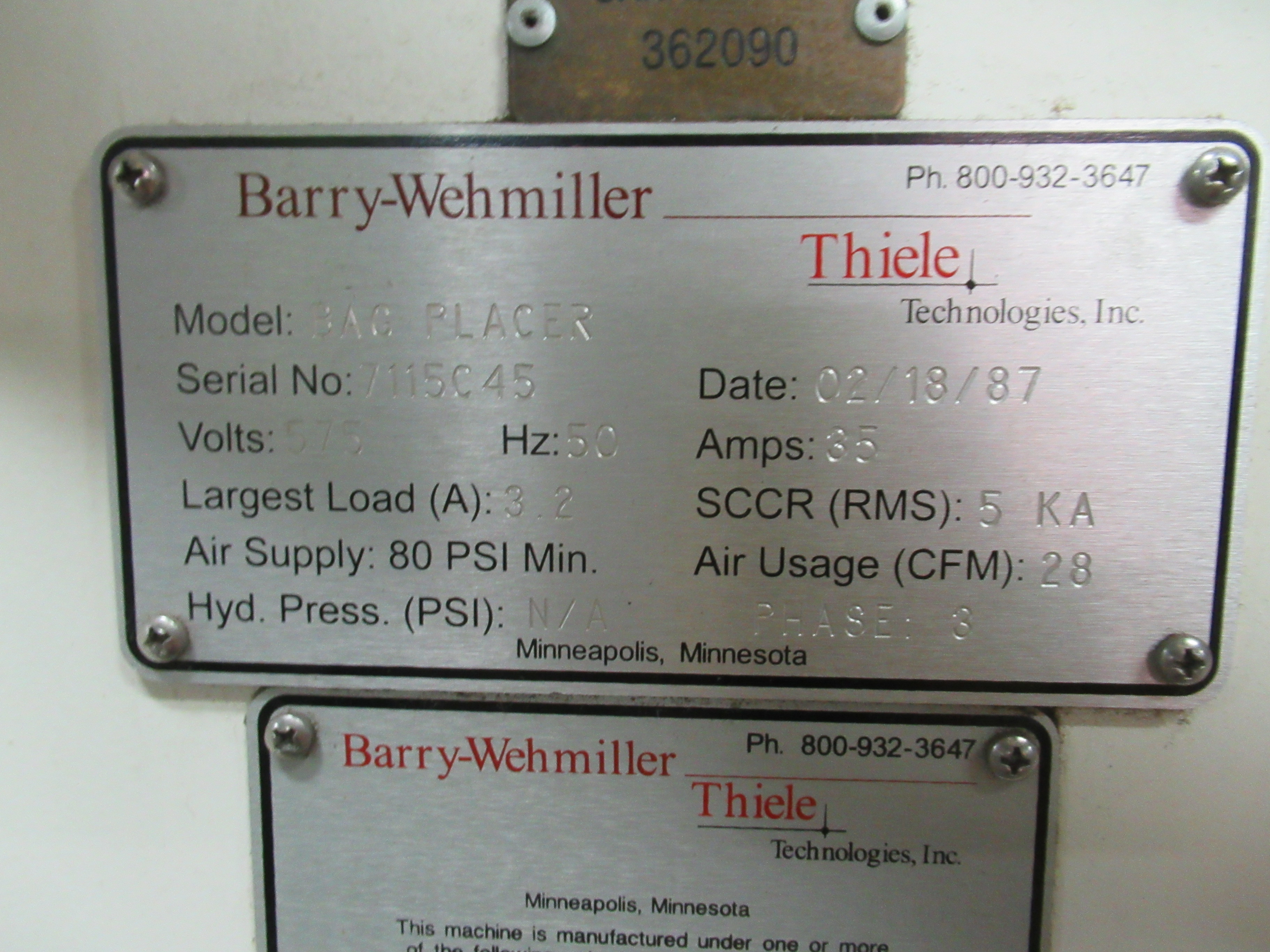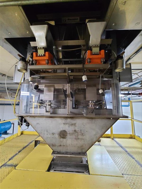 Thiele bag filler system, mod Bag Placer, s/n 7115C45, with (2) Parsons weigh filler, bag turner, bag infeed conveyor (2007) [Packaging Line 9]