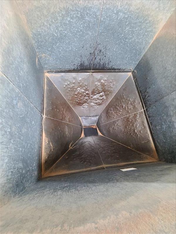 [LOT] (5) steel product hopper bins, 67 in h x 5 ft w x 5 ft l, bottom slide gate, bin no. 1, 3, 8, 9, 10 [Packaging Area, 2nd Floor]