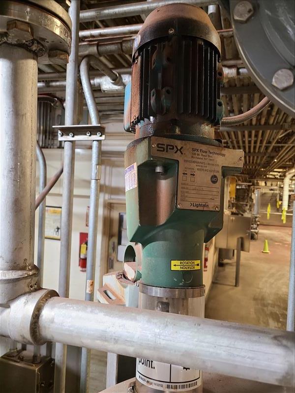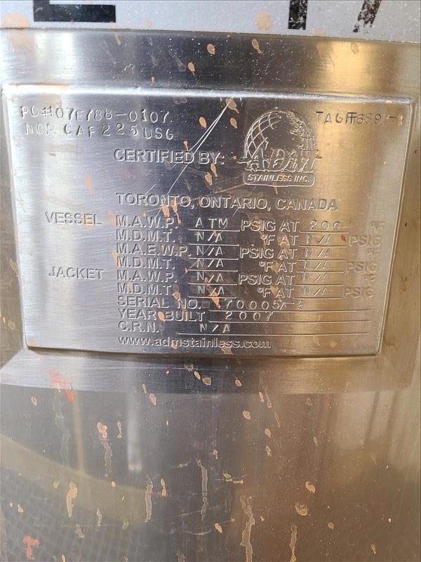 ADM stainless mix tank, s/n 7005-A2, with lightning agitator, 48 in straight side, 35 in diameter, 225 gal. cap., (2007) [Dryer Area]