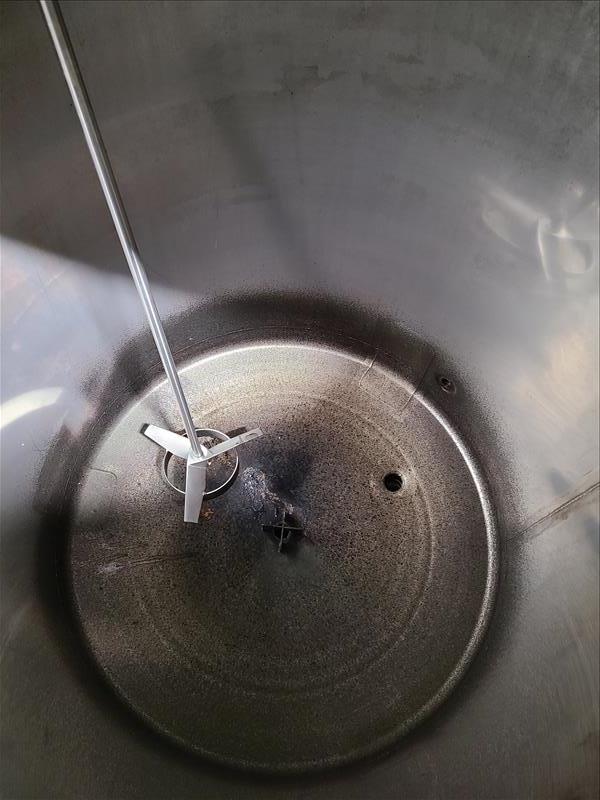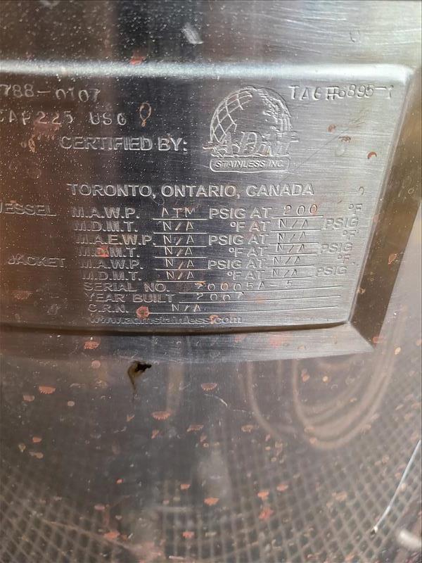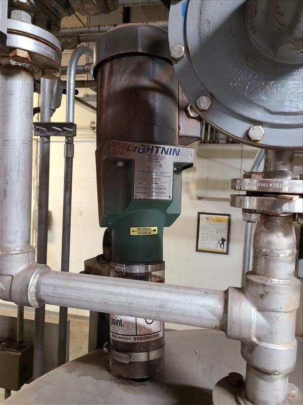 ADM stainless mix tank, s/n 7005-A5, with lightning agitator, 48 in straight side, 35 in diameter, 225 gal. cap., (2007) [Dryer Area]