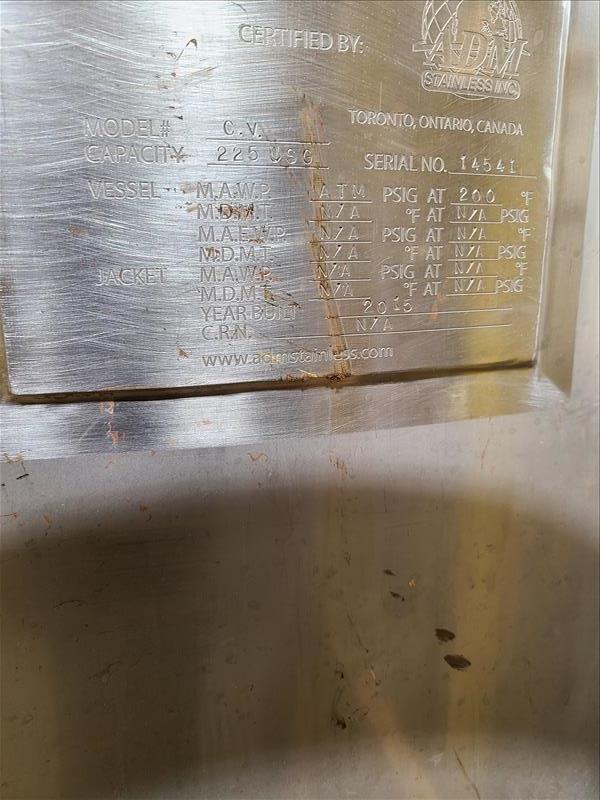 ADM stainless mix tank, s/n 145141, with lightning agitator, 48 in straight side, 35 in diameter, 225 gal. cap., (2007) [Dryer Area]