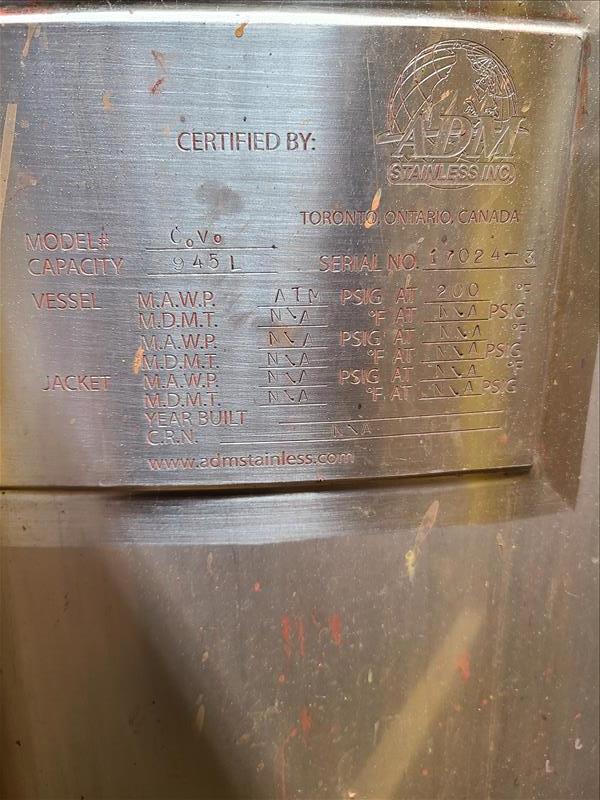 ADM stainless mix tank, s/n 17024-3, with lightning agitator, 50 in straight side, 37 in diameter, 260 gal. cap., (2007) [Dryer Area]