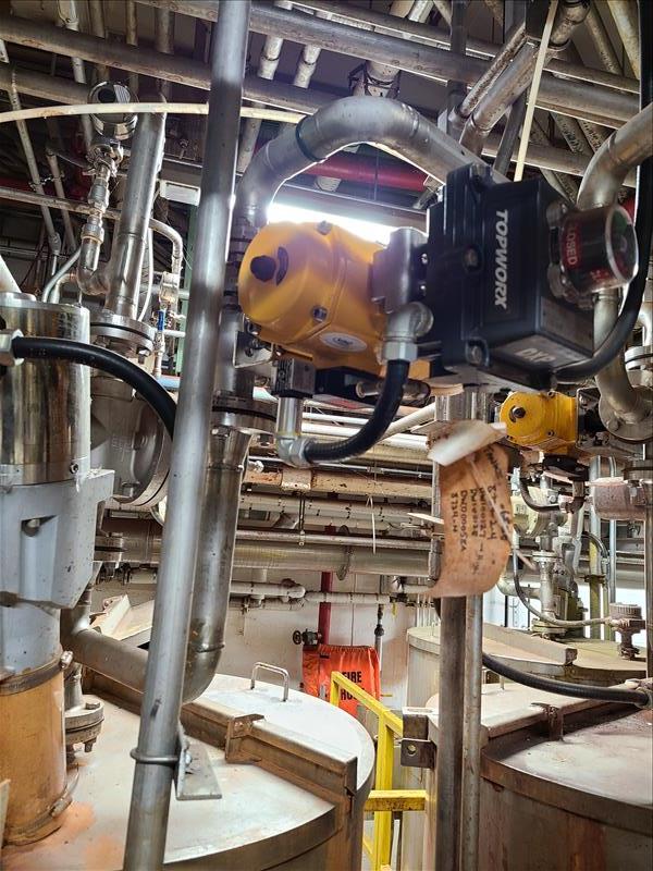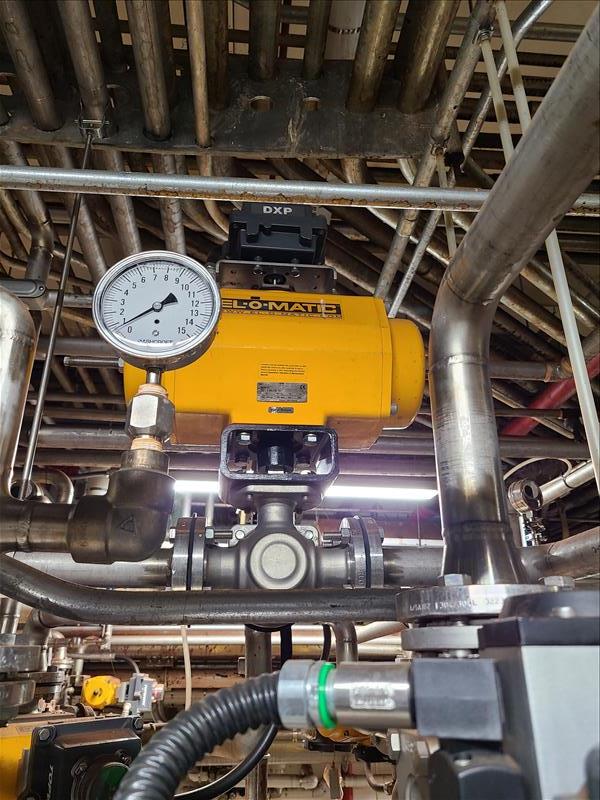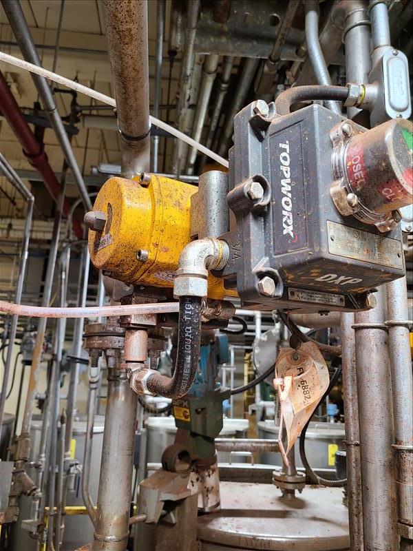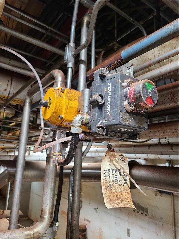 [LOT] (14) pneumatic actuator valves, various sizes, with 200 ft + stainless pipe work (pit area only) [Dryer Area]