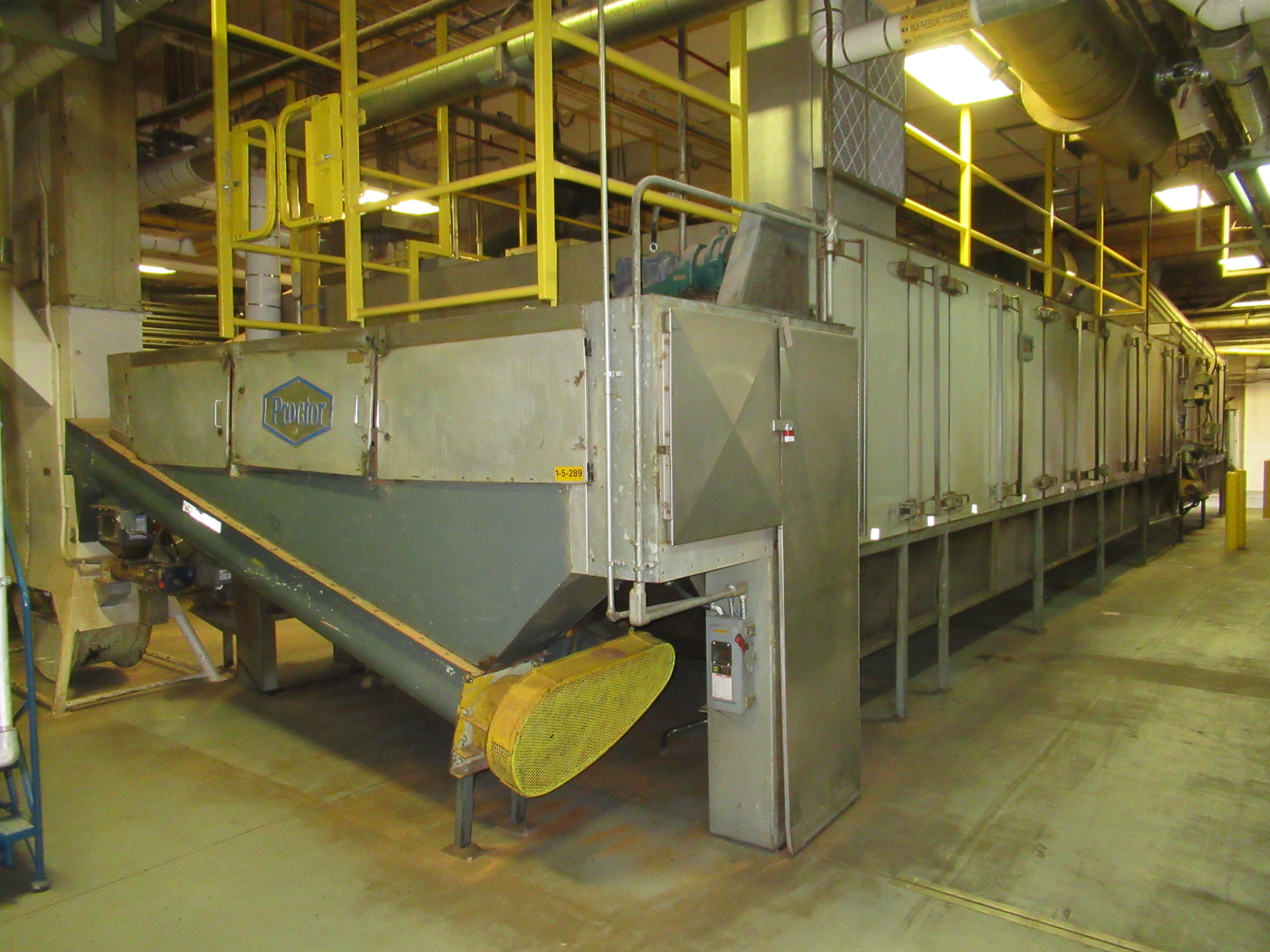 Proctor Schwartz dryer with discharge, screw auger conveyor, oscillating belt conveyor infeed 62 ft l x 16 ft w x 100 in h [Dryer Area]