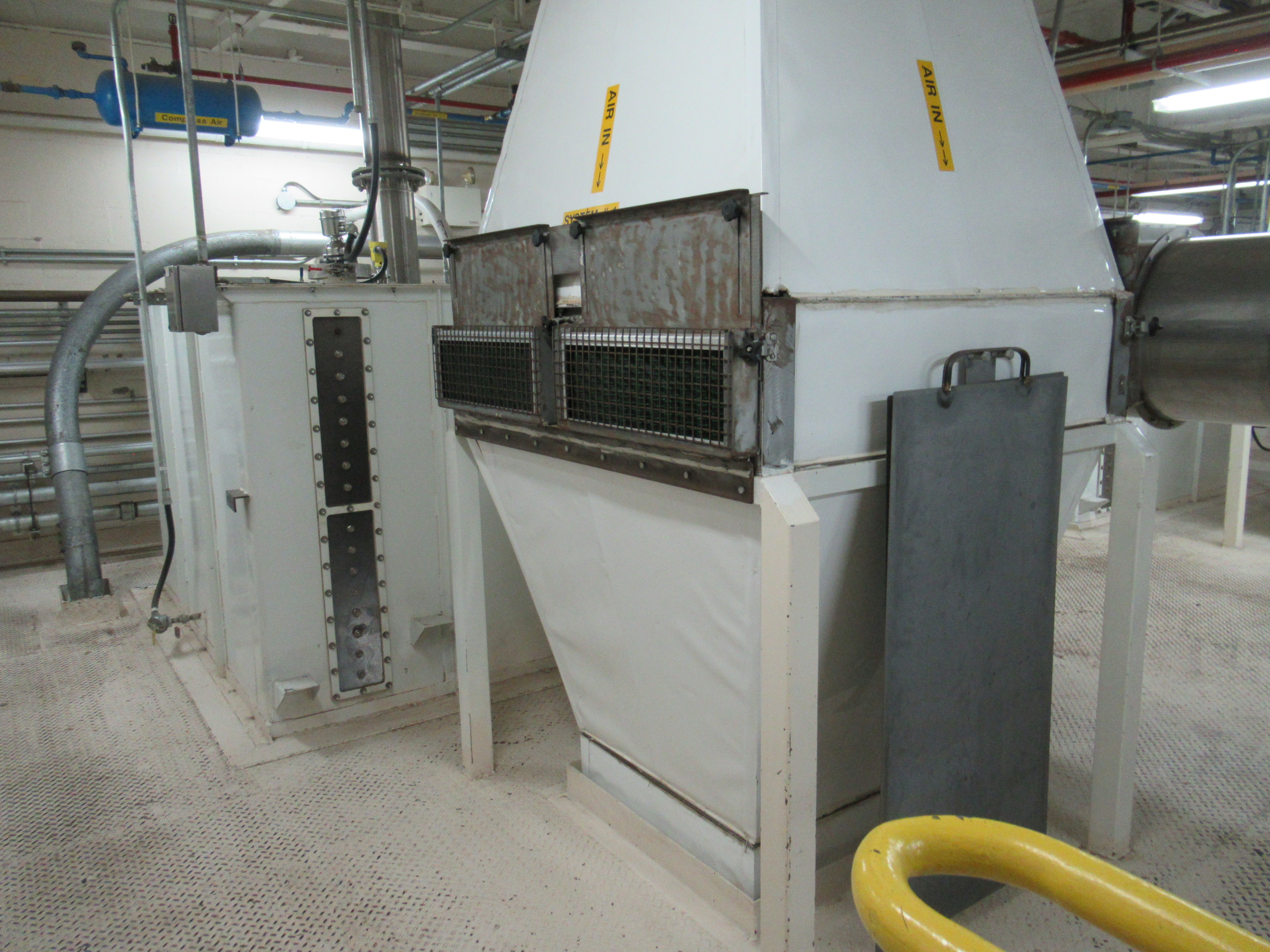 NYB 30 GI fan unit, mod 404 D-H, with Buther exhaust piping dock work, rotary valve, cooling system (located on mezzanine) [Cooling Area, 2nd Floor]