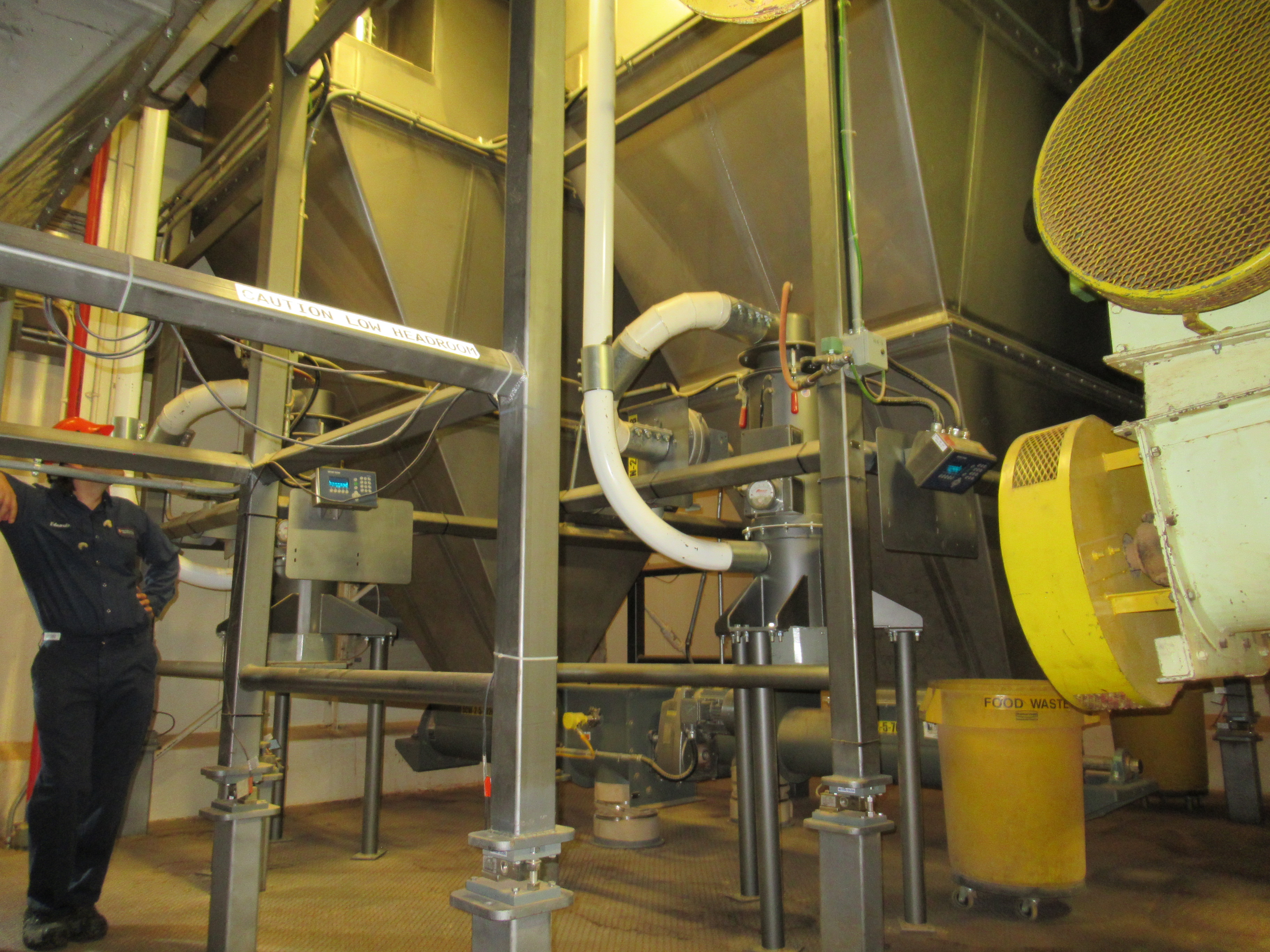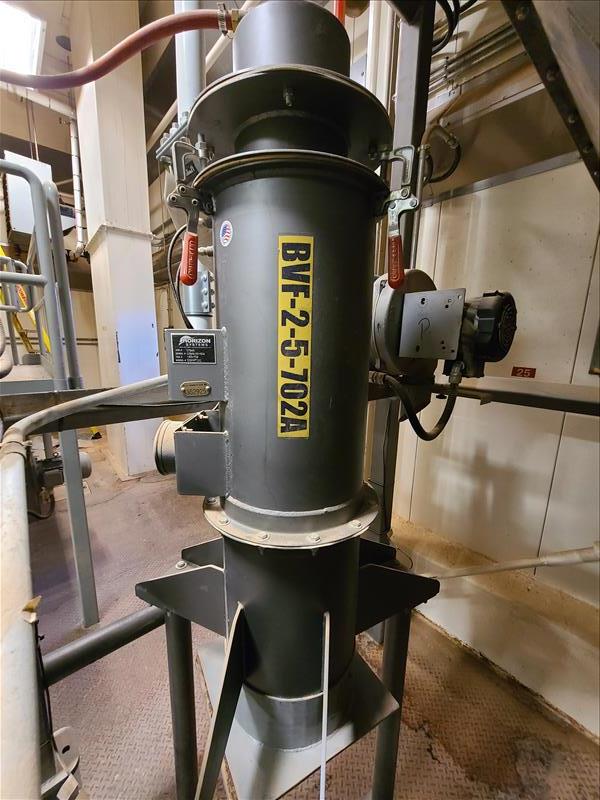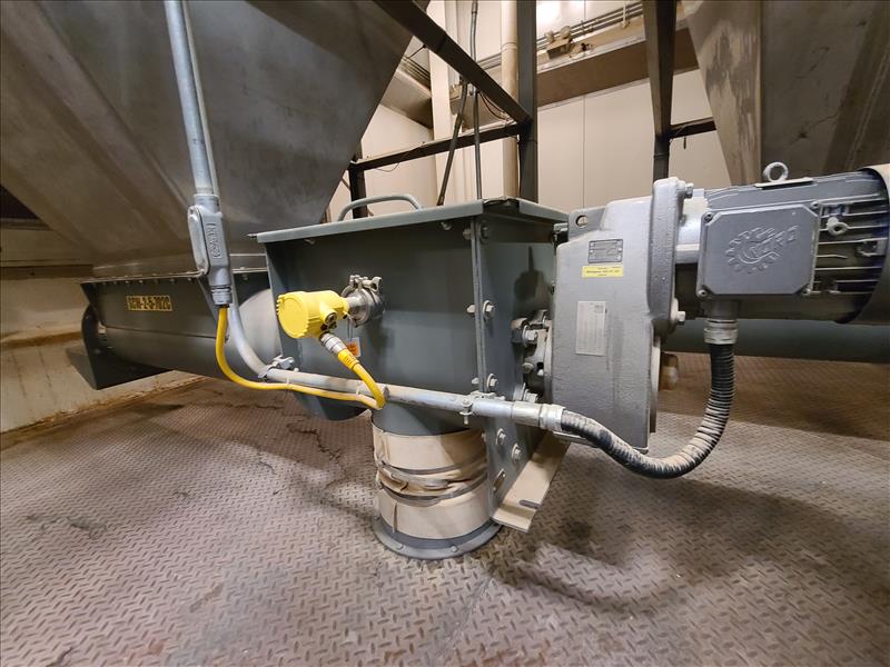 (2) Horizon collection hopper bin on load cells, 156 in h x 12 ft l x 5 ft w, with 12 in w x 6 ft l screw auger, discharge, stainless [Tower, 2nd Floor]