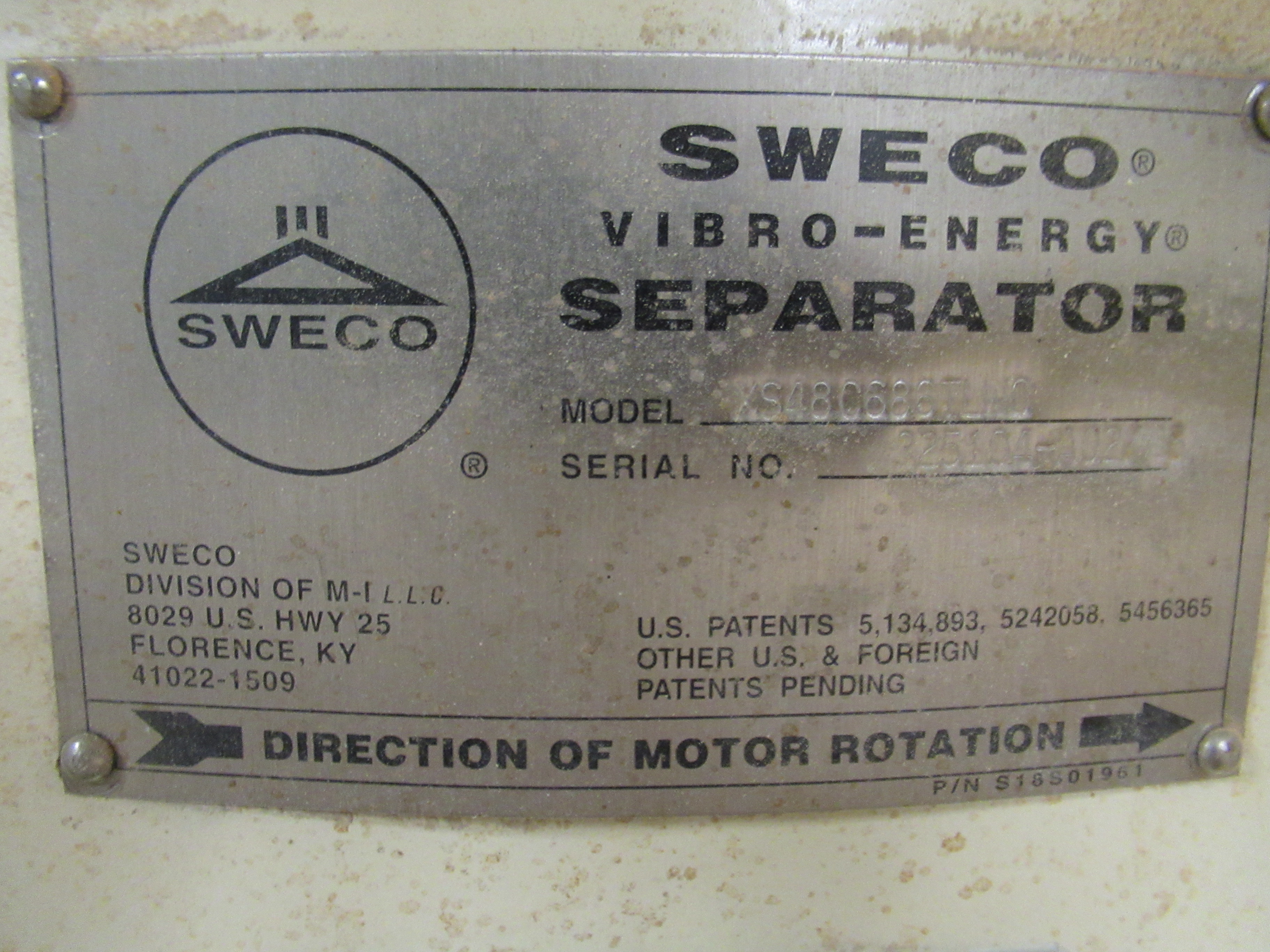 Sweco vibrator separator, mod XS480686T, s/n 325104A0206, 48 in [Tower, 5th Floor]