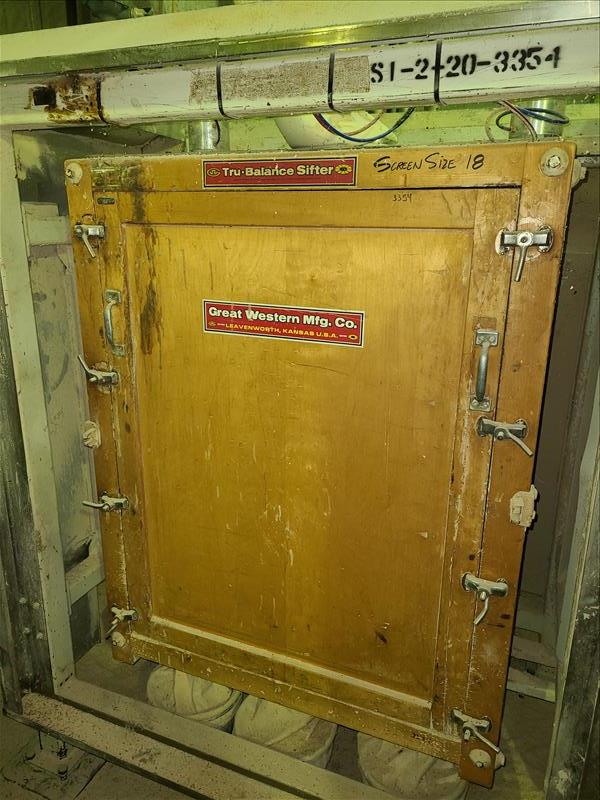 Great Western stainless frame sifter, mod 222, 48 in x 40 in x 38 in (above hammer mill) [Milling Area]