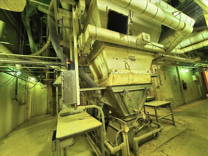 Hopper scale on load cell, 7 ft x 5 ft x 99 in deep, stainless table, touch screen, table scale 20 in x 20 in [Milling Area]