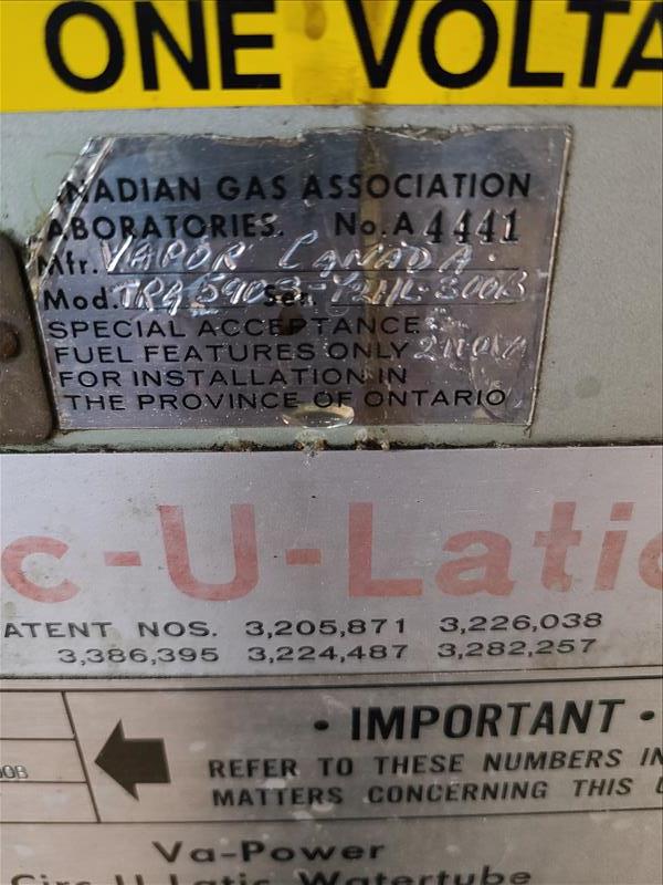 Vapor Air water tube steam boiler, gas, 40,000 BTU/hr., 540 sq. ft. heating surface [Boiler Area]