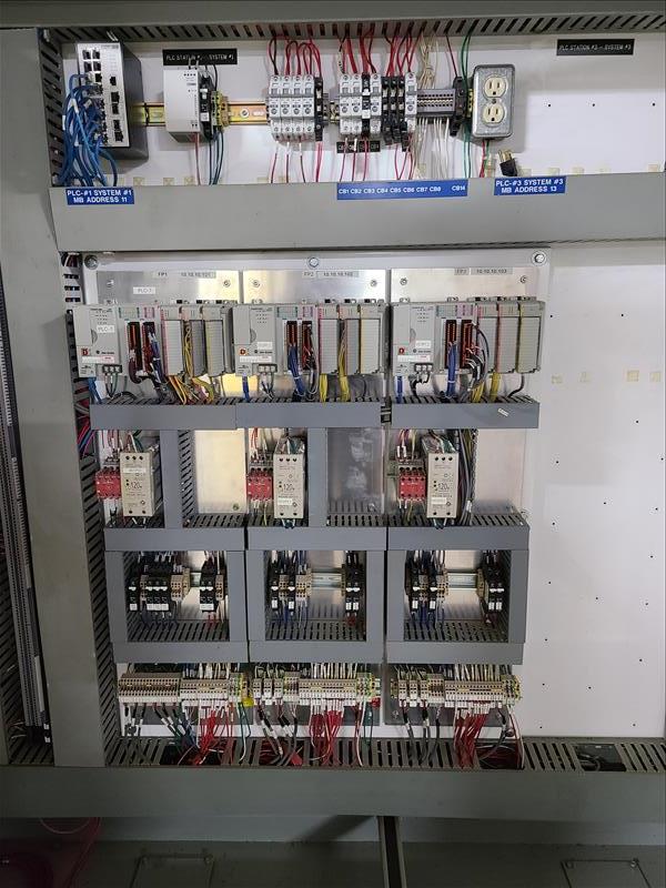 [LOT] (2) control cabinet, (1) with Allen Bradley panel view plus 1000 touch screen, (3) compact logix L24ER ethernet/IP module, (1) Airanger XPL, (1) Milltronic A010, (1) BIC II monitor, (1) with (4) CPSI420 module, (4) CRA 93100 module, (9) DAI 530/00 115 vac in, (5) DRA 840/00 relay out, (3) DAO 842/00 115 vac out, (3) ACO 020/00 analog out, (6) AVI 030/00 analog in [Packaging Area]