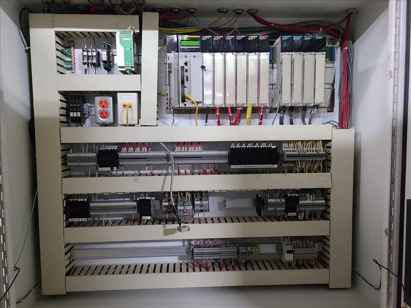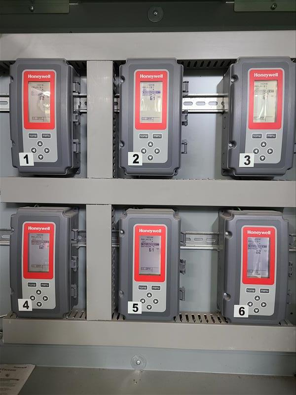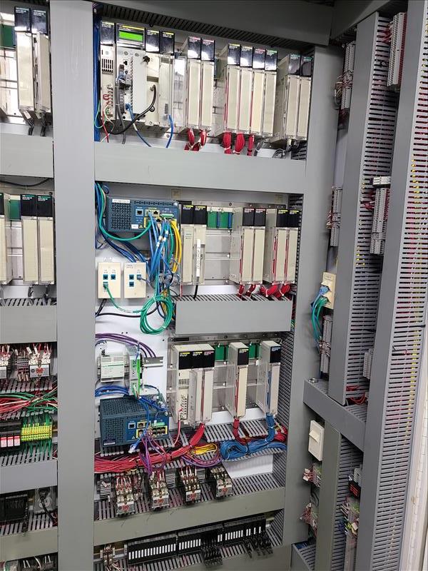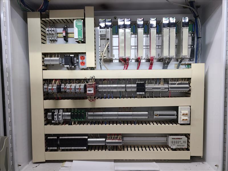 [LOT] (5) control cabinet, with CPU module, VAC, relay, analog, (1) with Honeywell multiple supply control [Packaging Area]