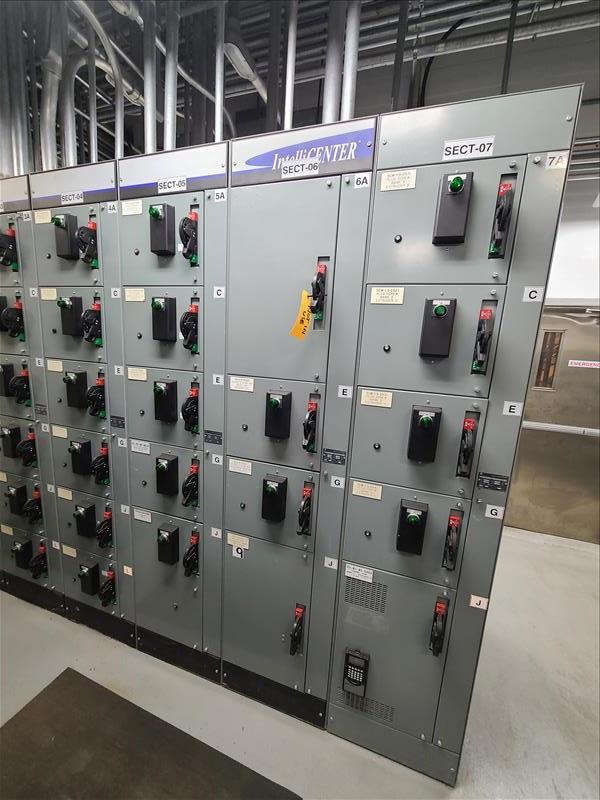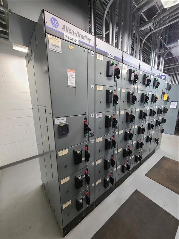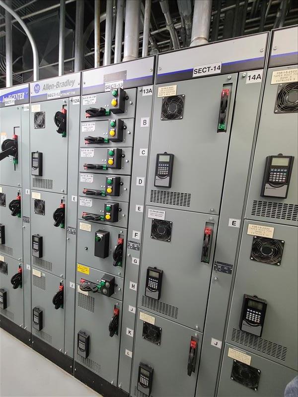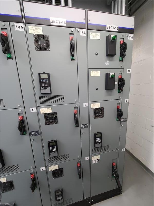 Allen Bradley 14 section motor control center, mod 2100, with (16) power flex variable frequency drive, (46) bucket starter switch [Dryer Area]