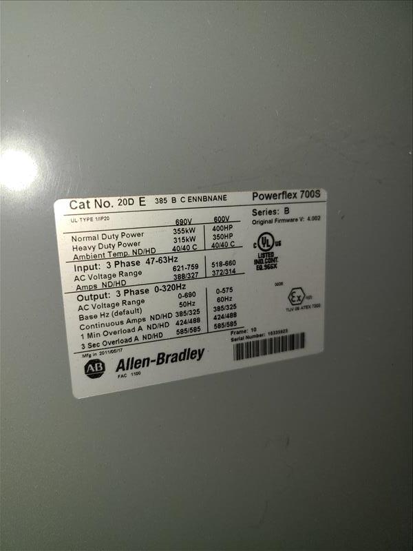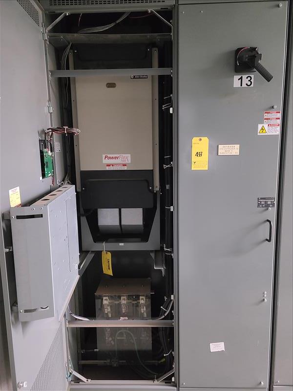 Allen Bradley 2 control cabinet, mod 7005, with Power Flex variable frequency drive, 300 hp, main shut off switch [Dryer Area]