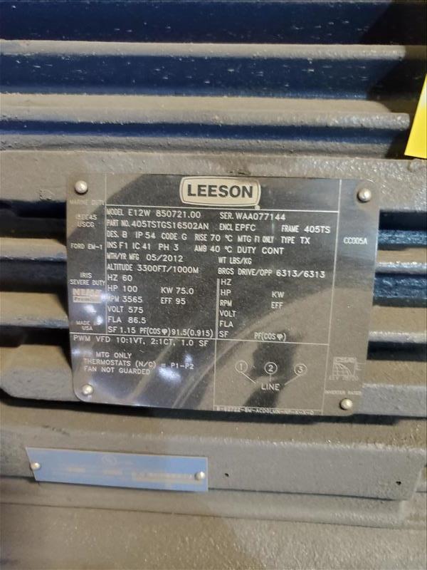 Lesson motor, s/n 77144, 100 hp, 575 v, 3 ph, 405TS frame, 3565 rpm [Packaging Warehouse]