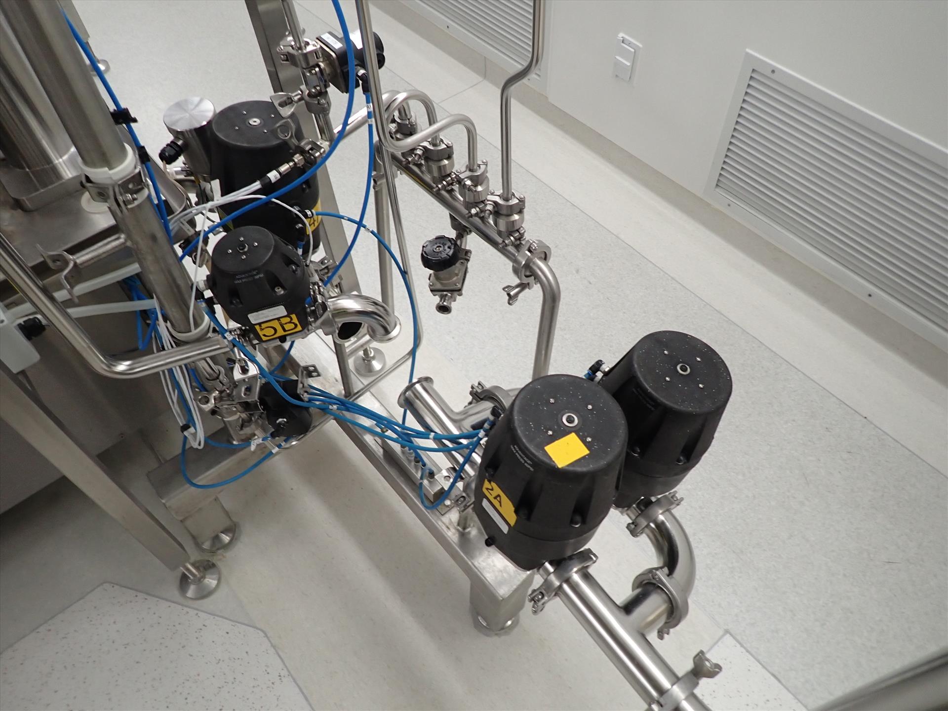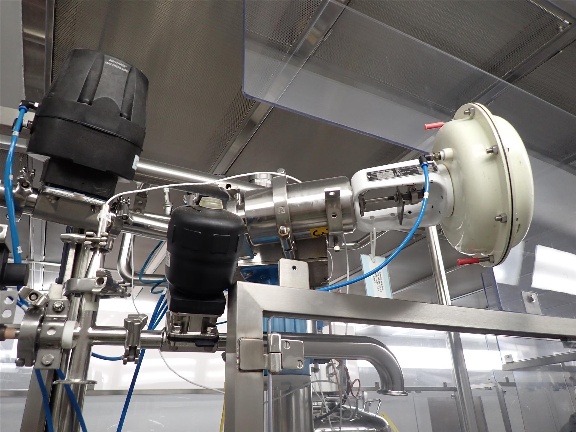 Advantage PureFlow 90 psi valve cluster inc. (3) mod. 2-A4216 & (4) mod. 1-A208 diaphragm actuator valves & Baumann mod. 54-84-161 SA sanitary control valve c/w associated 1.5 in. in. s/s pipe (Subject to confirmation. The winner will be determined based on the sum of bids on lots 2-14A vs on bulk bid lot 1)