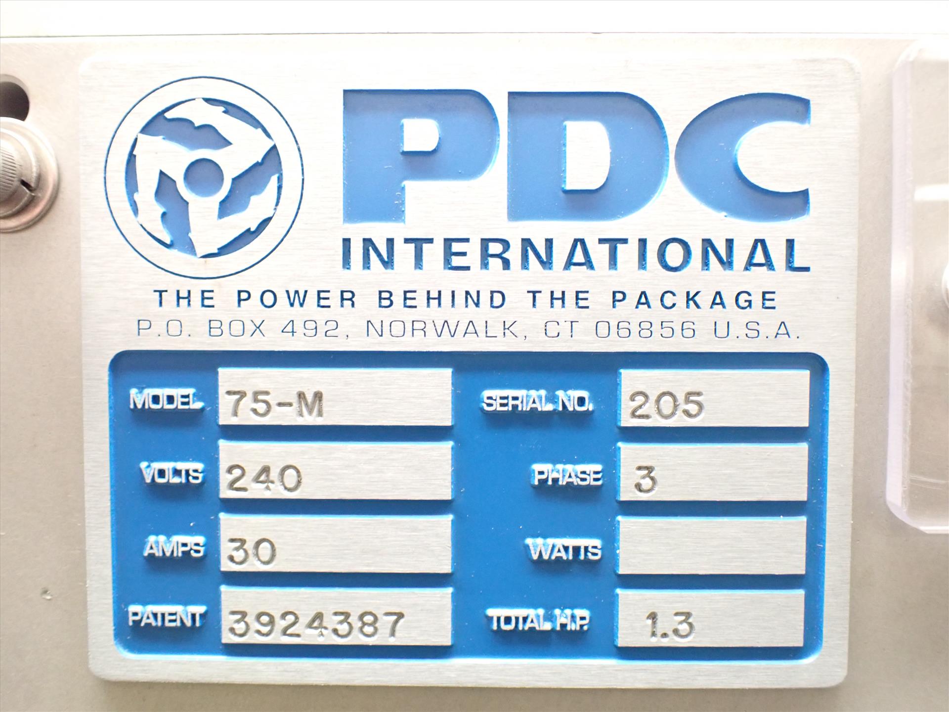 PDC mod. 75-M neck-band sealer, s/s, 1.3 hp w/ ProFace touch screen controls, ser. no. 205 (Subject to confirmation. The winner will be determined based on the sum of bids on lots 29-41 vs on bulk bid lot 28)