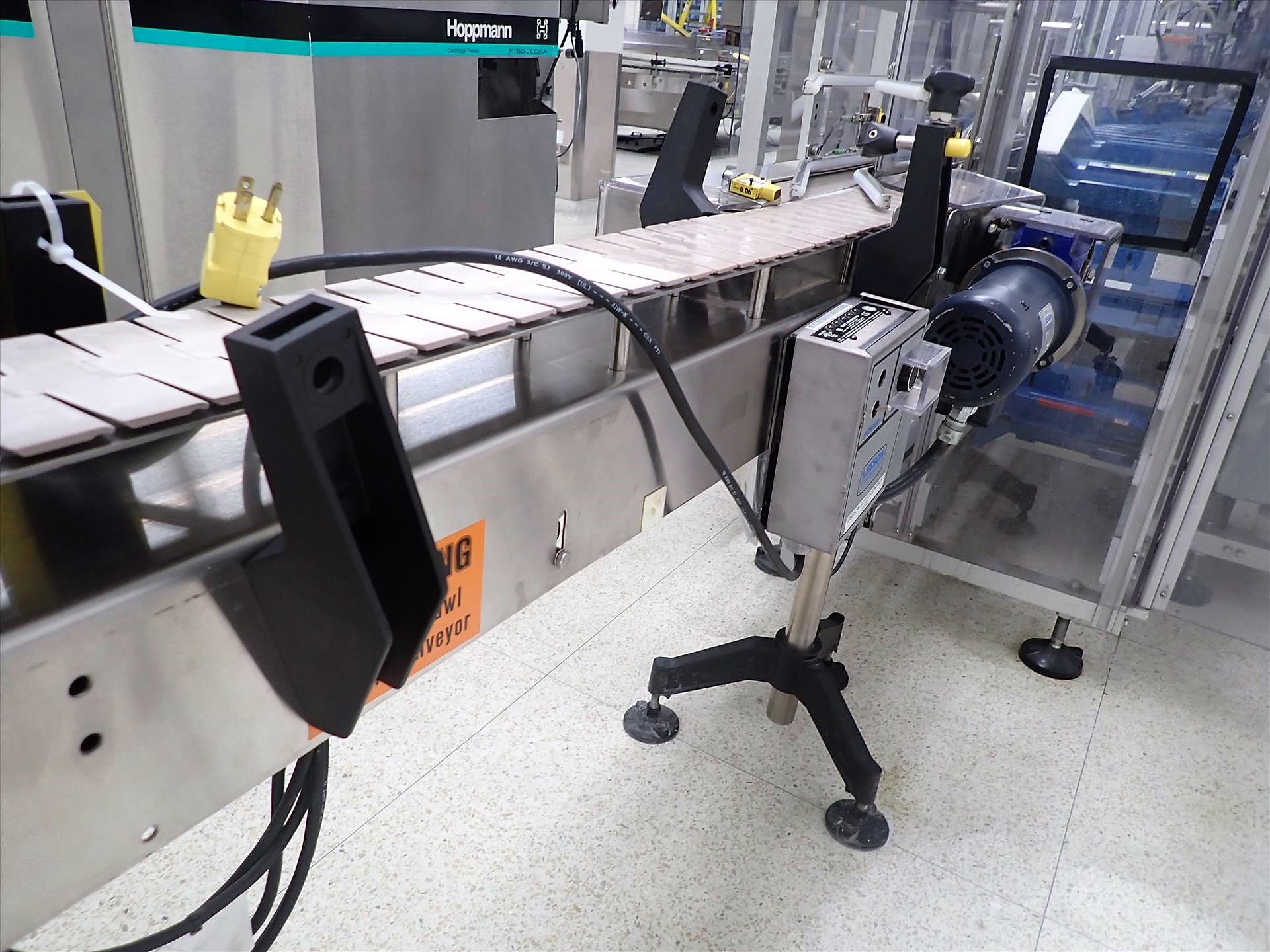 Trio-Pak slat-top chain conveyor, s/s, approx. 4.5 in. x 19 ft., 90 deg., 1/2 hp, VSD