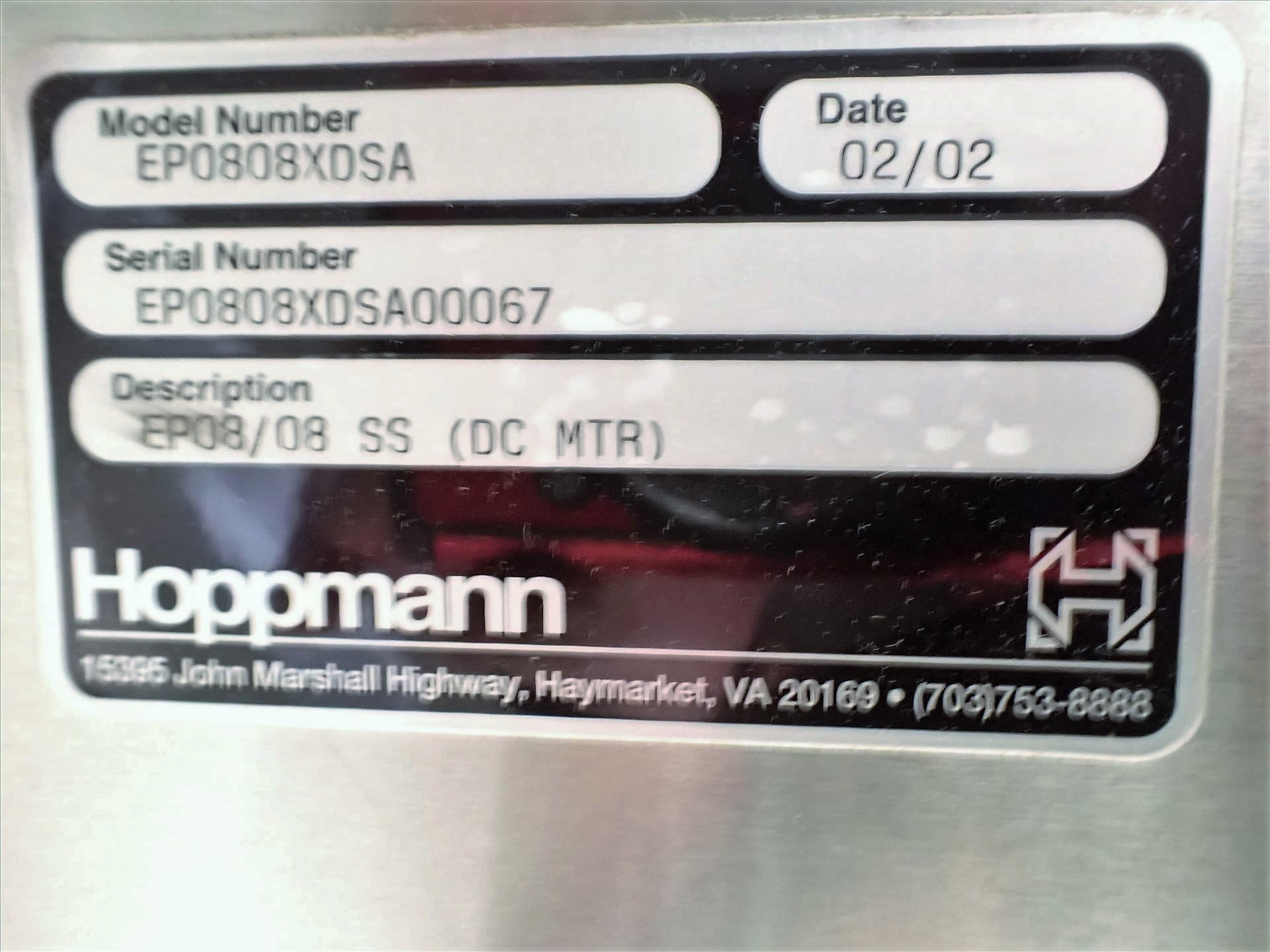 Hoppmann mod. EP0808XDSA bottle hopper elevator, s/s, 18 in. fluted belt, approx. 40 in. x 42 in. hopper, ser. no. 67