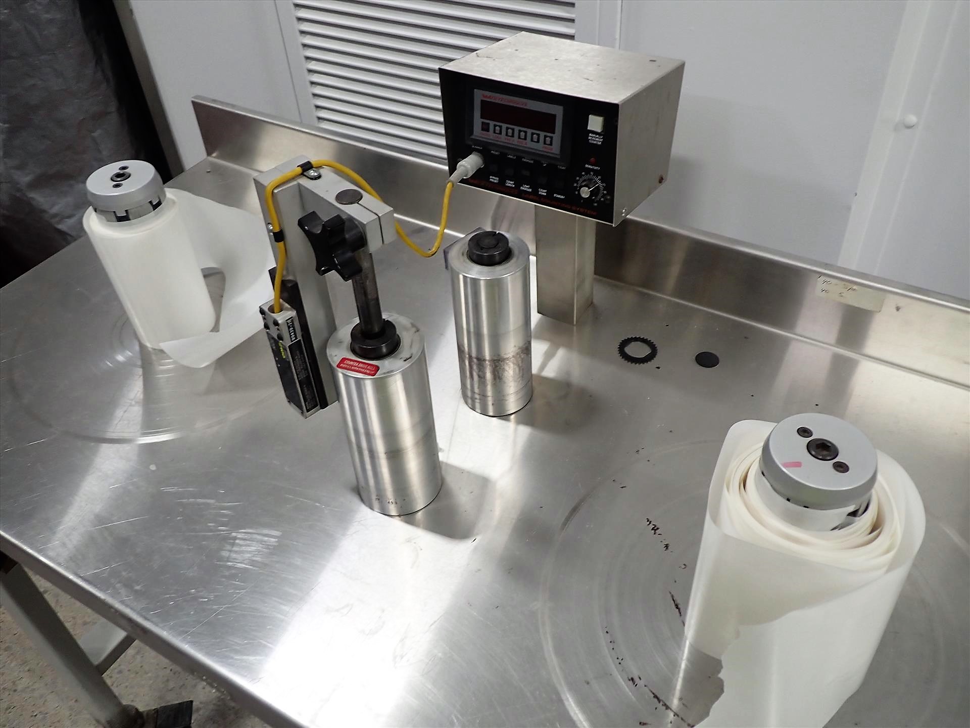 WT mod. WT-25LC label rewinder w/ counter, ser. no. 25LC991671