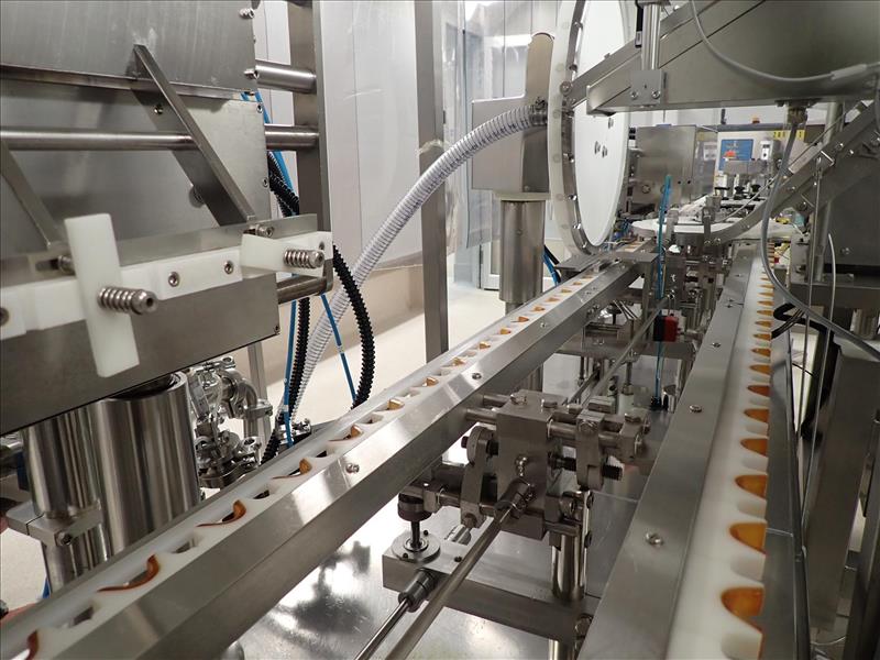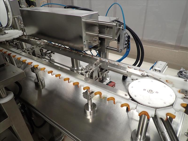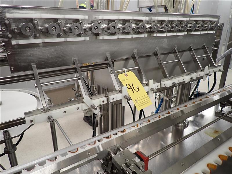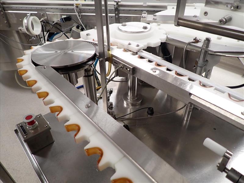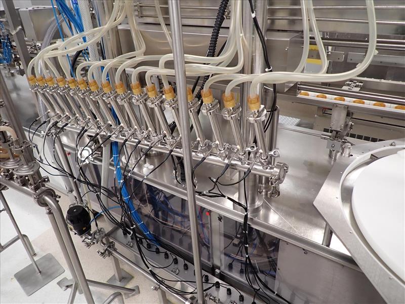 Bosch/TL Systems time-pressure filler, 16-nozzle, s/s w/ carousel conveyor, plug inserter, 8-head capper, configured for 30 ml bottles (Subject to confirmation. The winner will be determined based on the sum of bids on lots 92-102 vs on bulk bid lot 91A)