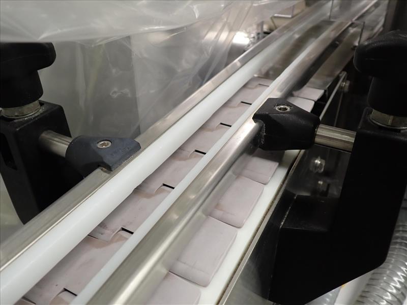Trio-Pak slat-top chain conveyor, ser. no. 64581, slat-top chain, s/s, approx. 3 in. x 18 ft., power, 45 deg. (subject to confermation) (Subject to confirmation. The winner will be determined based on the sum of bids on lots 103-108 vs on bulk bid lot 102A)