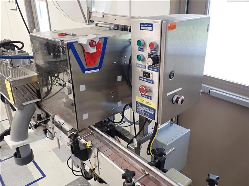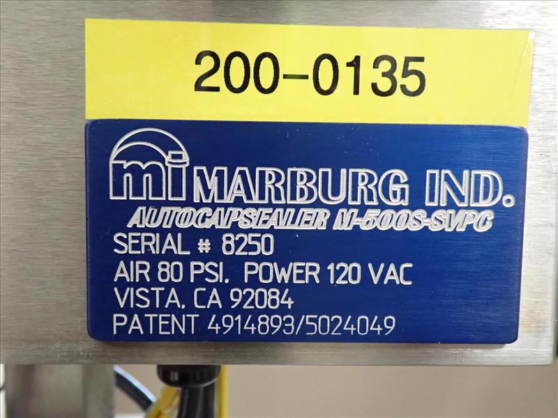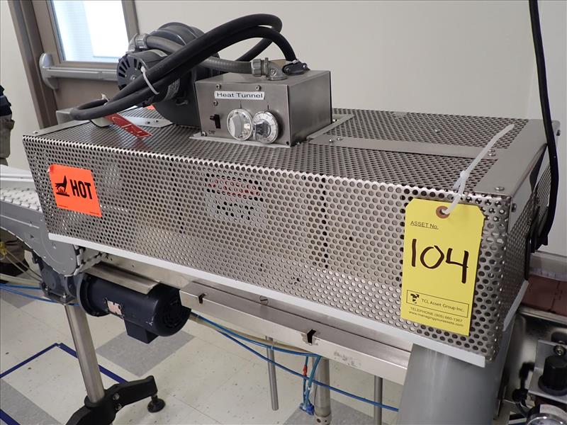 Marburg bander/auto cap sealer, mod. M-500S-SIPC, ser. no. 8250, s/s c/w heat tunnel & conveyor, 3 in. x 10 ft., s/s, 0.5 hp, VSD (Subject to confirmation. The winner will be determined based on the sum of bids on lots 103-108 vs on bulk bid lot 102A)