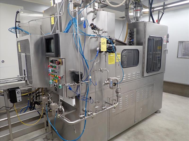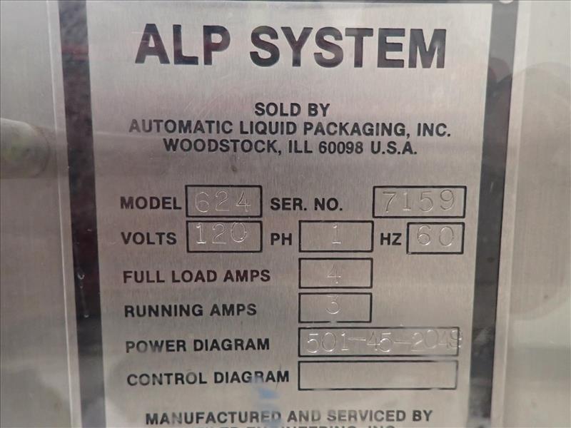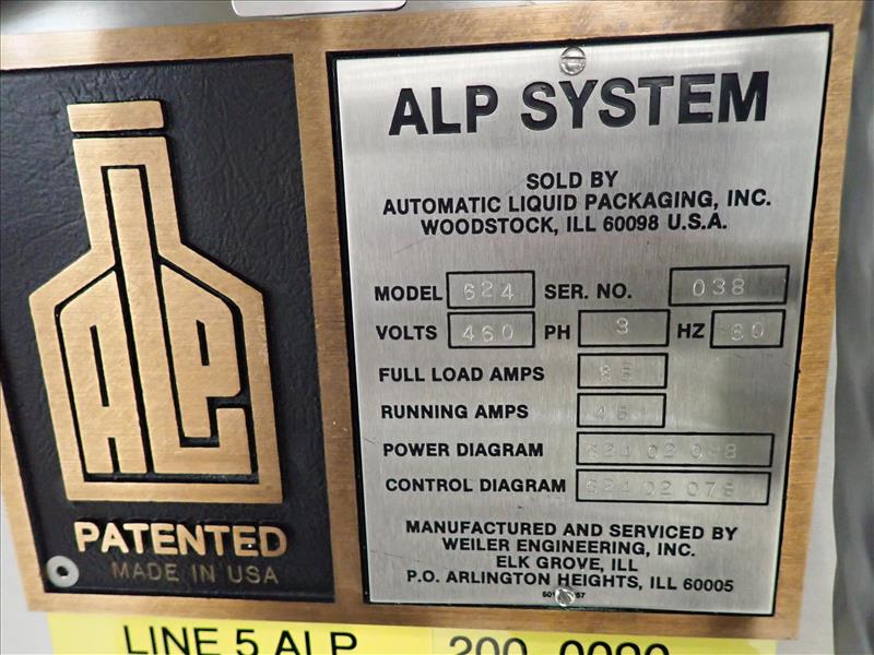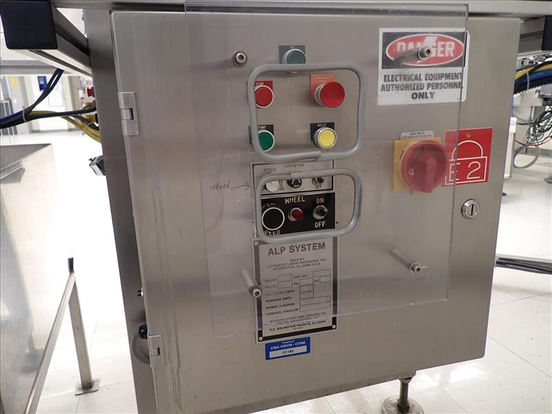 ALP System blow/fill/seal machine (BFS), mod. 634, ser. no. 38, 57800 hrs., 20 hp w/ mould for 3 ml applicator c/w Mould-Tek feed hopper, associated valves, etc. c/w ALPS deflasher, mod. 624, ser. no. 7159, c/w Weiler pick and place infeed system, touch-screen controls and 4 in. x 8 ft. exit conveyor (subject to confirmation)