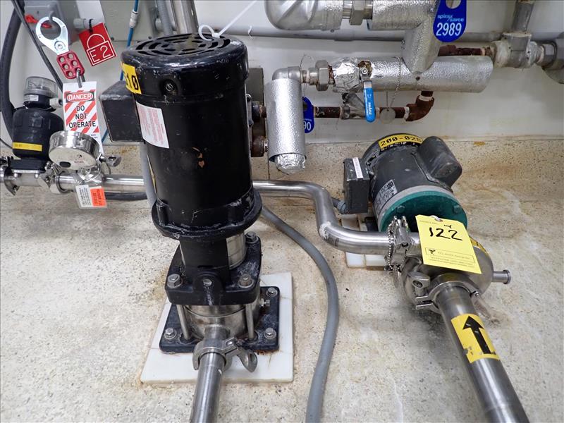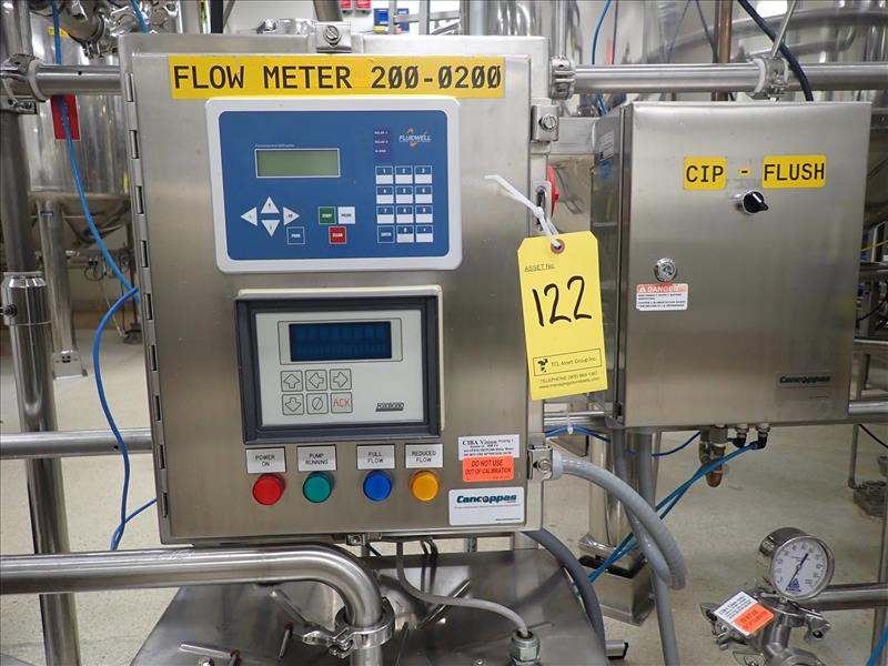 Cancoppas flow meter system c/w CIP-Flush control, Tri-Clover 1.5 hp centrifugal pump, Grundfos 0.75 hp process pump, VegaSwing 61XC level switch, Foxboro TA Series mass flow tube, associated valves and s/s pipe
