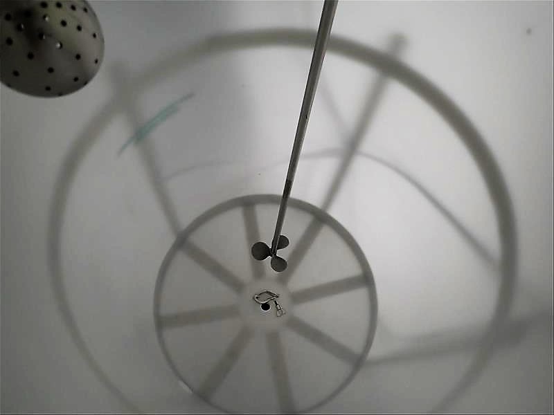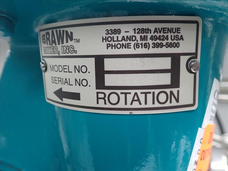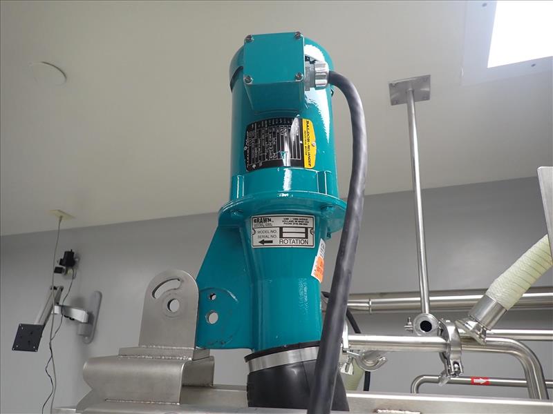 Terracon poly tank, 30 in. dia. X 60 in., cone bottom, bottom discharge c/w Brawn mixer, mod. MD50, 0.5 hp