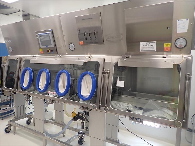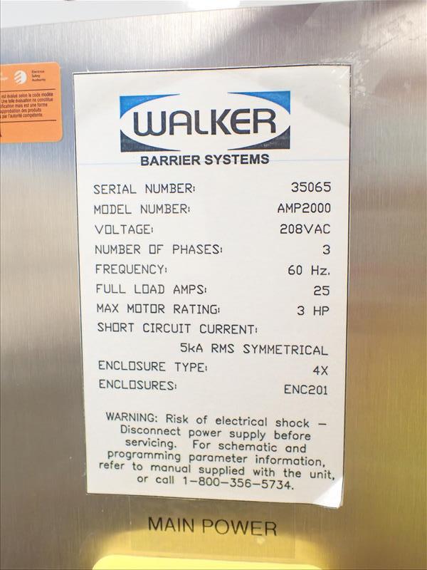 Walker Barrier Systems transfer isolation station/glovebox, mod. AMP2000, ser. no. 35065, s/s, 4-glove w/ PanelView 1000 touch-screen controls c/w BioQuell Clarus L Hydrogen Paroxide vapour generator, s/n 2009081289 and MAS-100 Iso NT air sampler