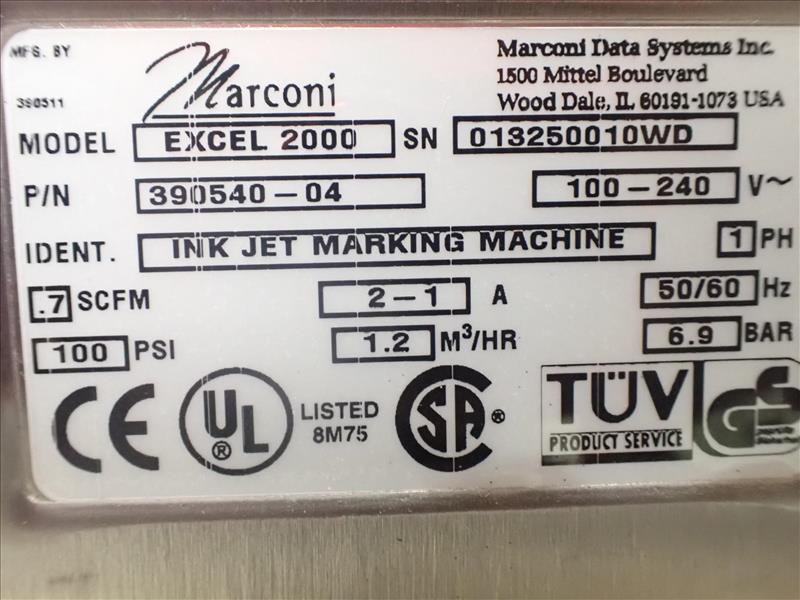 Marconi ink jet coder, mod. VideoJet 2000, ser. no. 013250010WD