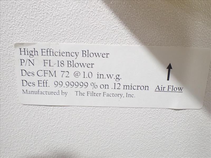 FilterFactory high efficiency blower, mod. FL-18, 0.12 micron