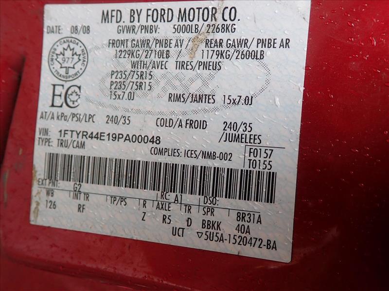Ford Pick Up Truck, model Ranger, 4.0L SOHC V6 engine, 2WD, w/automatic transmission, 250,828 km, VIN.1FTYR44E19PA00048 (2009) (Vehicle comes with a set of Winter Tires and Summer Tires)